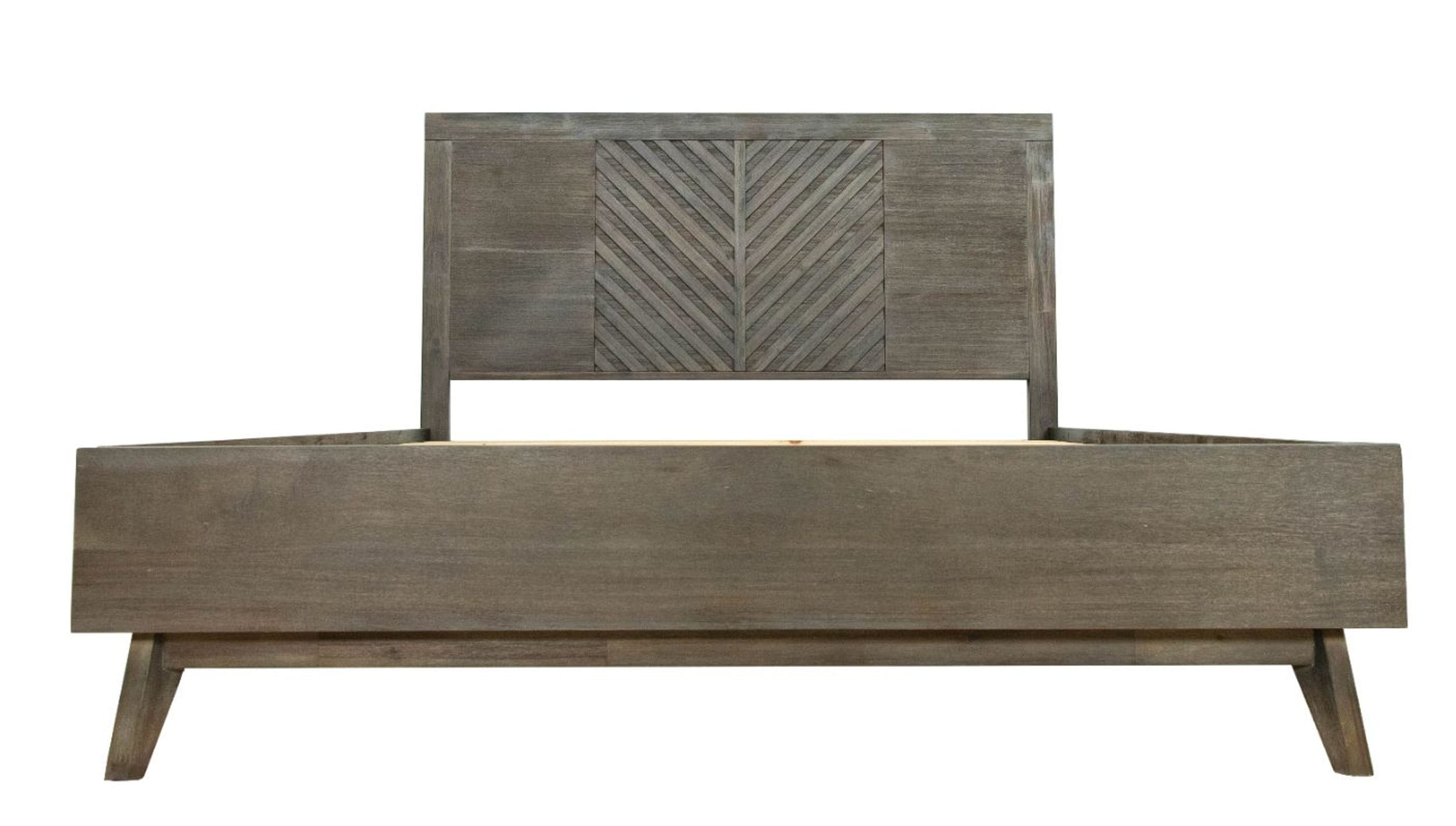 The Daisy Bed is the perfect collection of rustic materials to create a Mid-Century design. The carved chevron panels create visual interest and texture on the piece. The dark acacia solid wood construction is sturdy and beautiful. Pair with a cowhide rug for a rustic styling or with a soft shag for a more mid-century look.