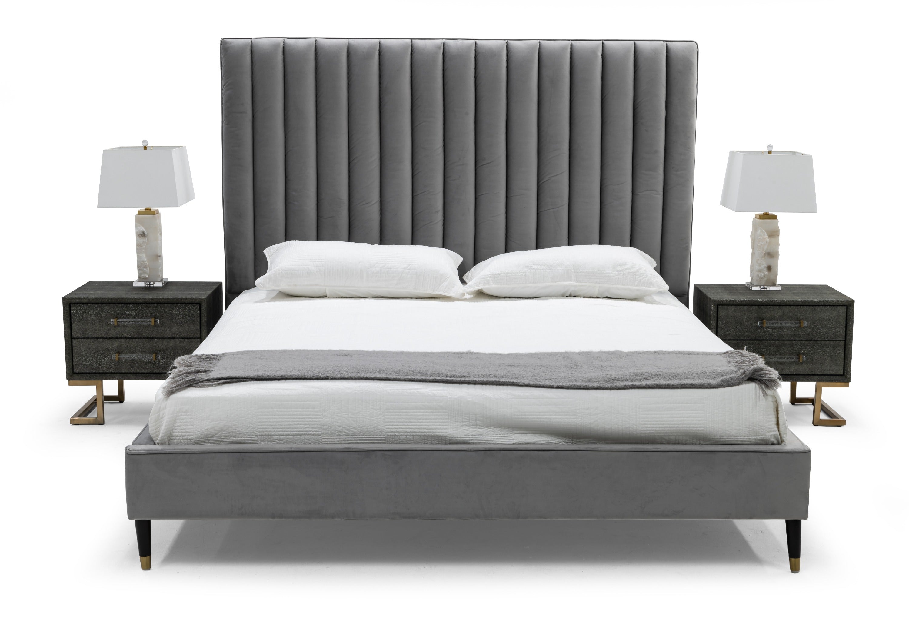 Modrest Hemlock Modern Grey Velvet Bed Model VGKKB606X-GRY-BED