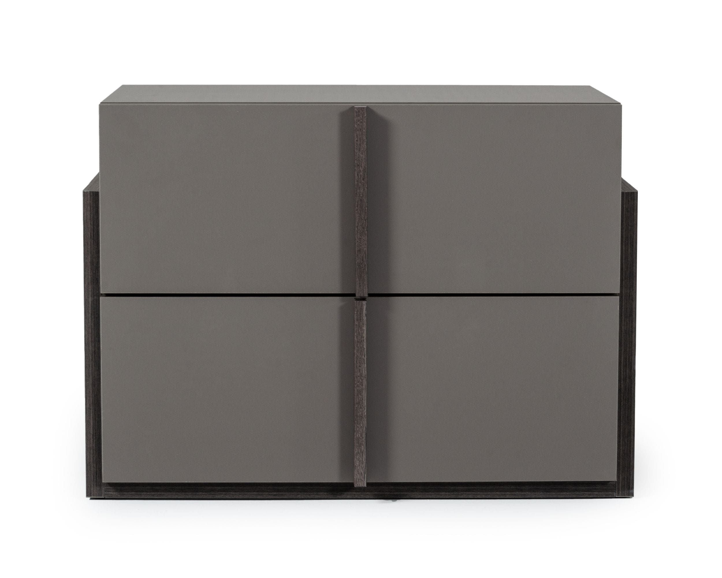 The Lucia Bed is the perfect example of finely crafted Italian elegance. This bed is simple and well made. The matte grey elm finish fits into any style. Add fur and sparkles for a glam look, cowhide and burlap for a rustic theme, bold colors and sharp lines for a modern look, or mixed metal and geometric patterns for an industrial style. It is incredibly versatile, pair with the rest of the Lucia line for a full set. The Lucia Modern Nightstand is perfect for your industrial bedroom. This contemporary nightstand has all the luxuries you require. The soft-close mechanisms and ball bearing glides create an ease of use that is greatly coveted in the bedroom. The two-drawer nightstand is finished in a matte grey elm veneer that matches everything