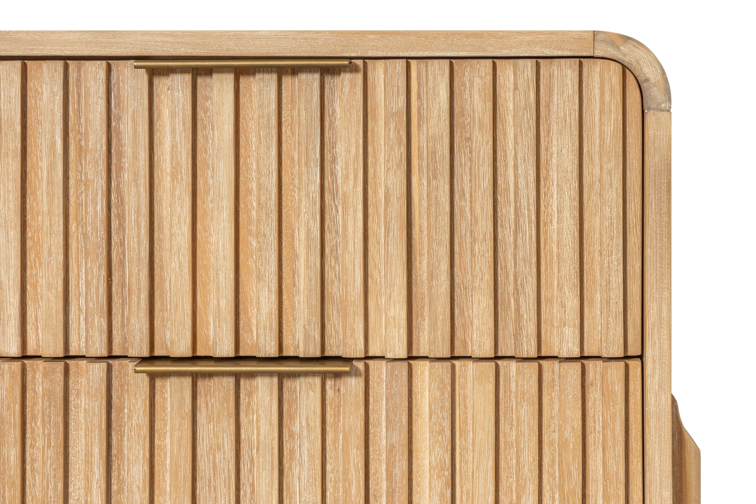 The Modrest Mikala Modern Natural Oak Bedroom Set combines quality materials and functional design for a stylish and comfortable sleeping space. Crafted from solid Acacia wood & manufactured wood, the case goods feature a natural finish with wire brush detailing. The bed includes slats (no box spring required) and central support legs, while the nightstands and dresser offer ample storage with soft/self-closing drawers. Easy to maintain, this set adds a touch of modern elegance to any bedroom.
