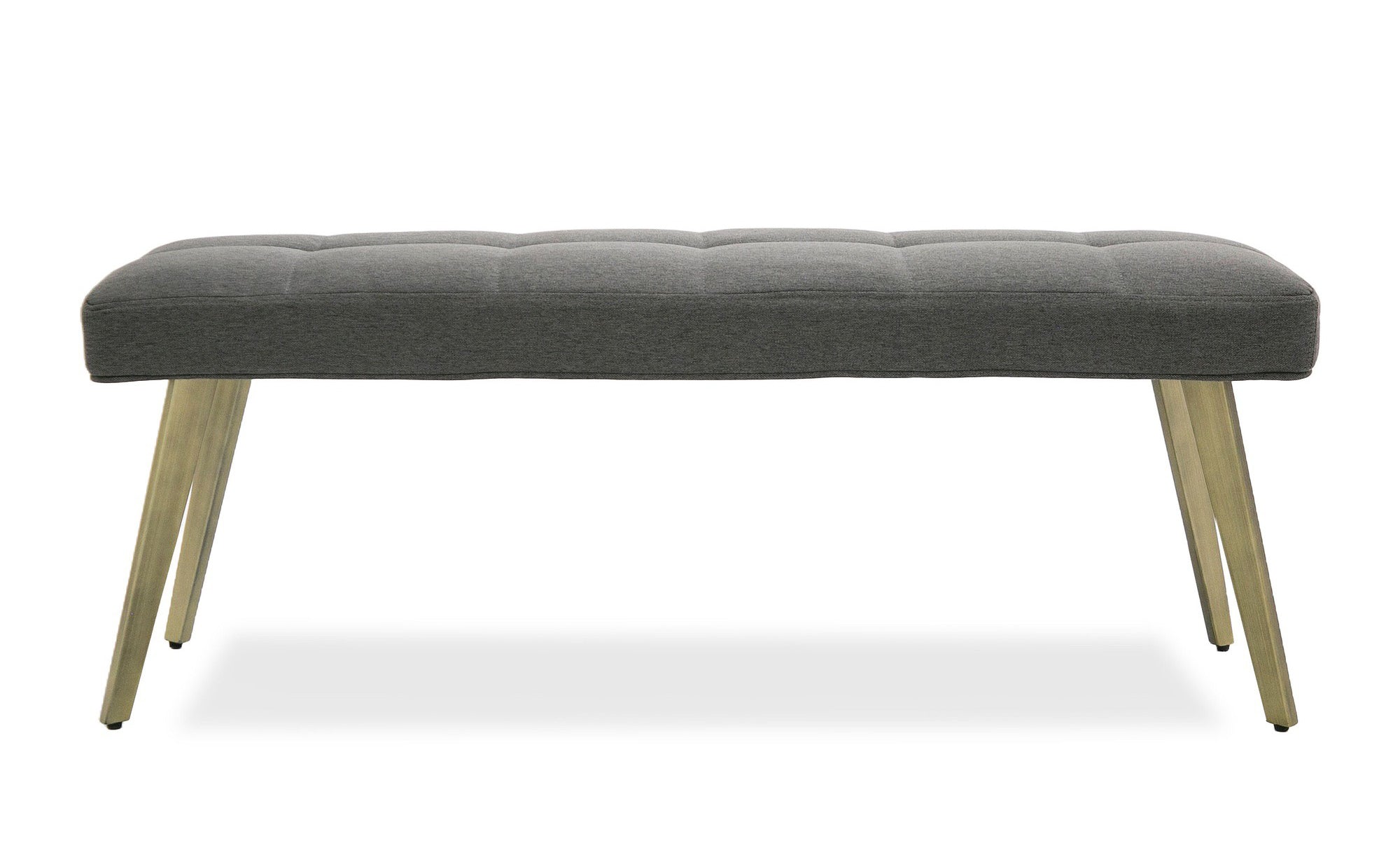 The grey woven fabric of the Cici Bench is contemporary and contrasts beautifully against the glam brushed antique brass tapered legs. Perfect for your entryway, pair it with a multicolored rug, a stylish coat rack, and some woven baskets for your perfectly styled space.