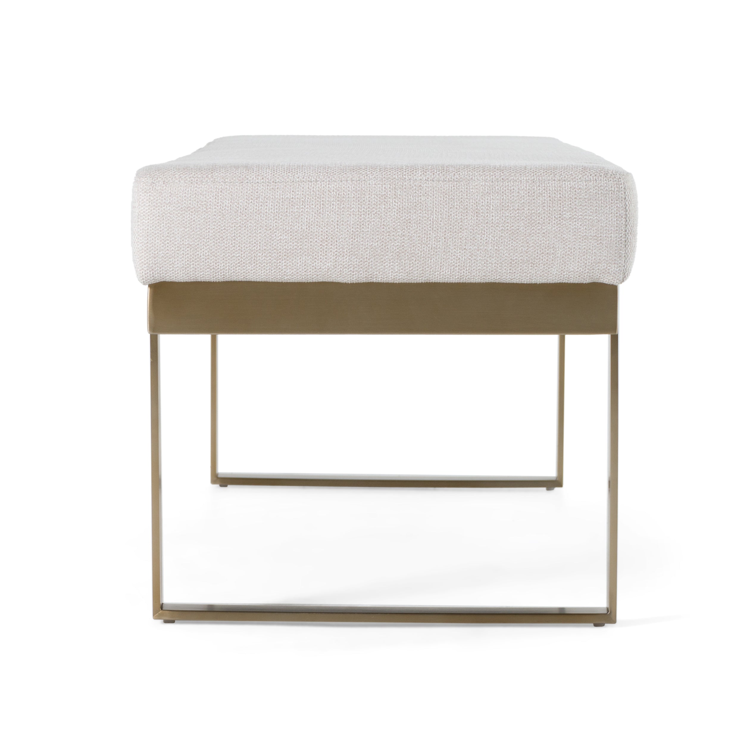 Modrest Tatum Modern Off White Fabric & Brass Dining Bench Model VGGA-8671BE-OFF