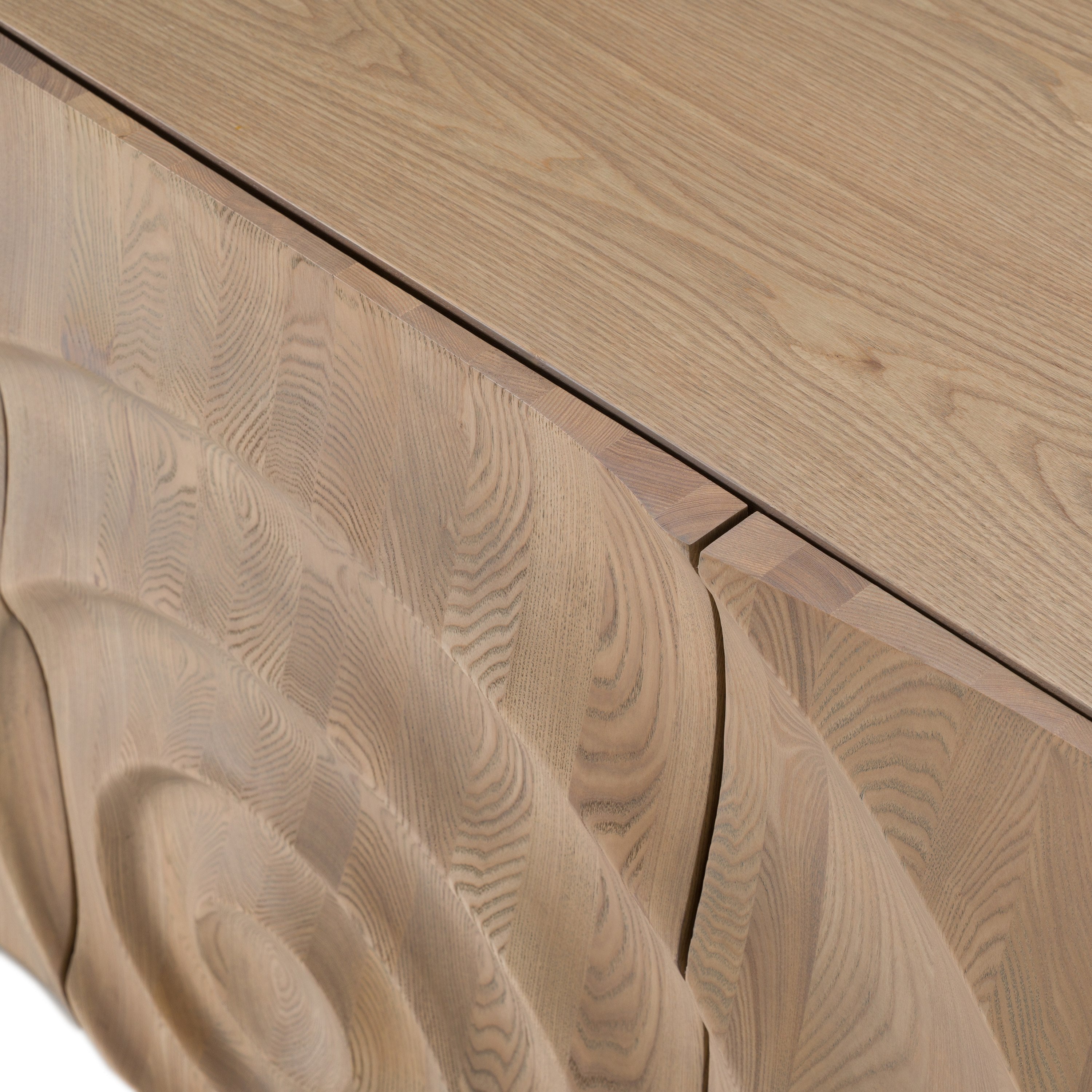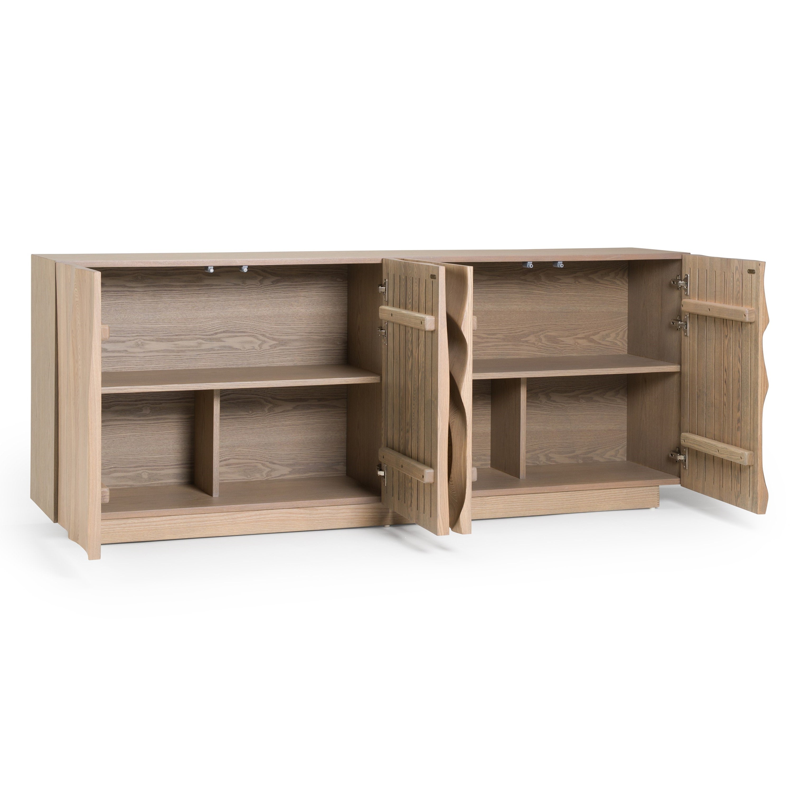 The Aleutian Modern Buckwheat Ash Buffet speaks the language of contemporary elegance with an understated sophistication. Its serene buckwheat ash veneer captivates, whispering subtlety amidst its sleek horizontal lines. Crafted from solid ash and manufactured wood, this buffet offers a tactile symphony through magnetic door catches and soft-closing doors. Behind its four seamless doors lie spacious compartments, each designed to cradle your treasures in refined grace. A study in functional beauty, this piece transforms any dining space into a haven of tranquility.