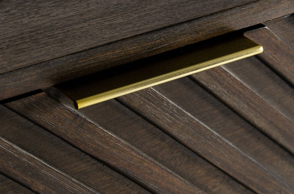 The Daisy Chest is the perfect collection of rustic materials to create a Mid-Century design. The carved chevron panels create visual interest and texture on the piece. The dark acacia solid wood construction is sturdy and beautiful while the brass handles create an industrial flair.