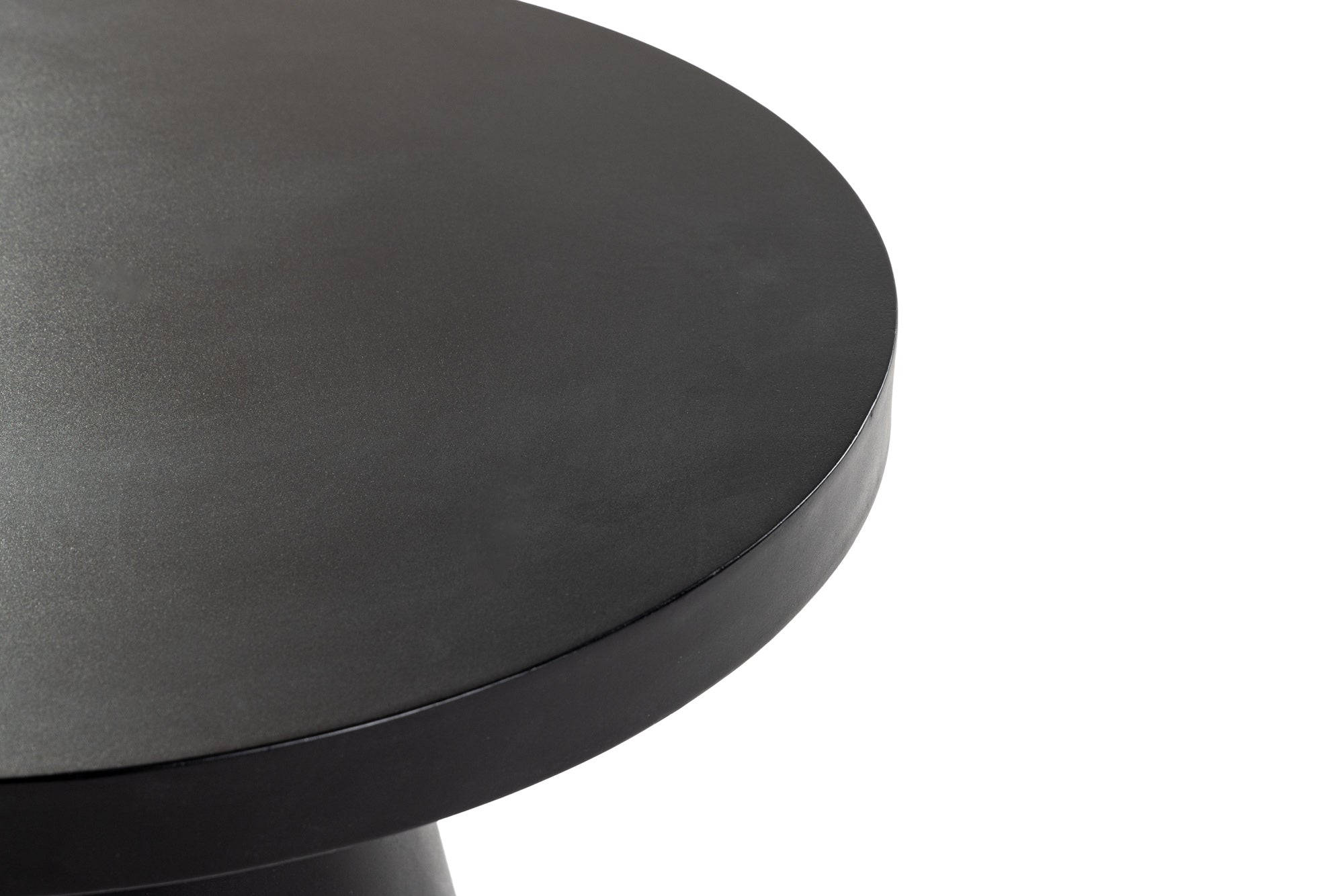 The Modrest Desoto is a striking modern coffee table, showcasing a sleek round top and a distinct conical base, both finished in a sophisticated black concrete. Its minimalist design and bold silhouette make it a captivating centerpiece for contemporary interiors. The smooth, expansive surface is perfect for decorative accents or beverages, while the sturdy base ensures stability. This visually appealing piece seamlessly blends elegance with functionality, adding a touch of refined style to any living space.