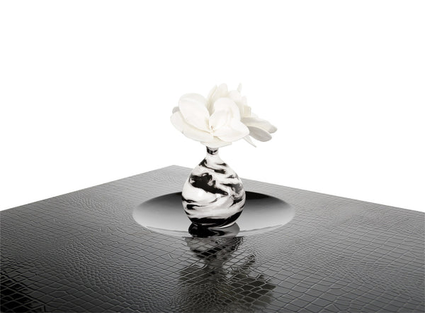 As part of the A&X Casa Luxury Collection, the Grand coffee table features detailed laser-cut crocodile texture treated with a durable semi gloss lacquer. Two drawers with a smooth gliding door mechanism create storage space for magazines and TV controllers. Intricately detailed, the Grand coffee table is highlighted with stainless steel accents and the inside of the drawers are lined with a patterned finish. Available in white and black. Matching set pieces are available separately.