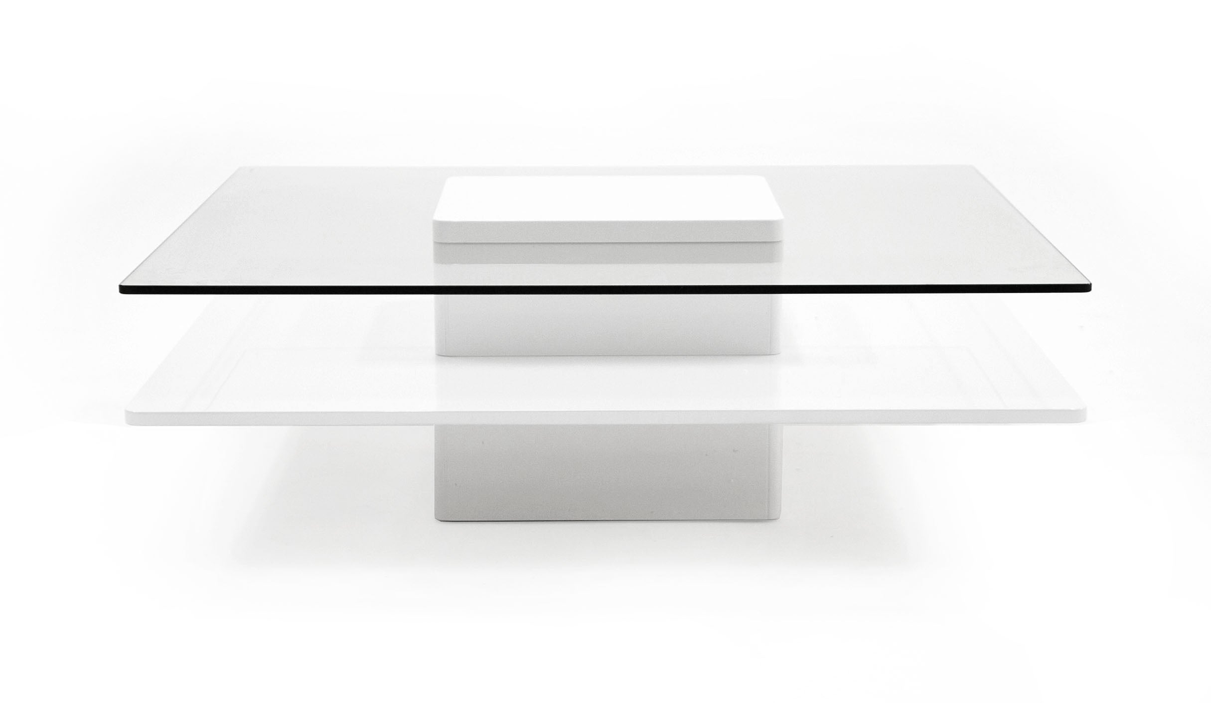 The Clarion Coffee Table is the perfect modern piece. The multitiered table has contrasting materials that create visual interest and texture. The clear tempered glass comprises the top layer of this beautiful coffee table while a white high gloss surrounds the bottom layer.
