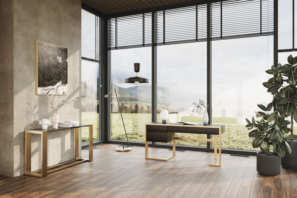 A fantastic high-end option for your home entryway is the Fauna Console The beautiful black wenge finish contrasts with the elegantly simple outlines of the rich brass frame to highlight the piece's inherent beauty. P air with a stylish accent tray or fresh flowers to create a warm atmosphere when guests enter your home.
