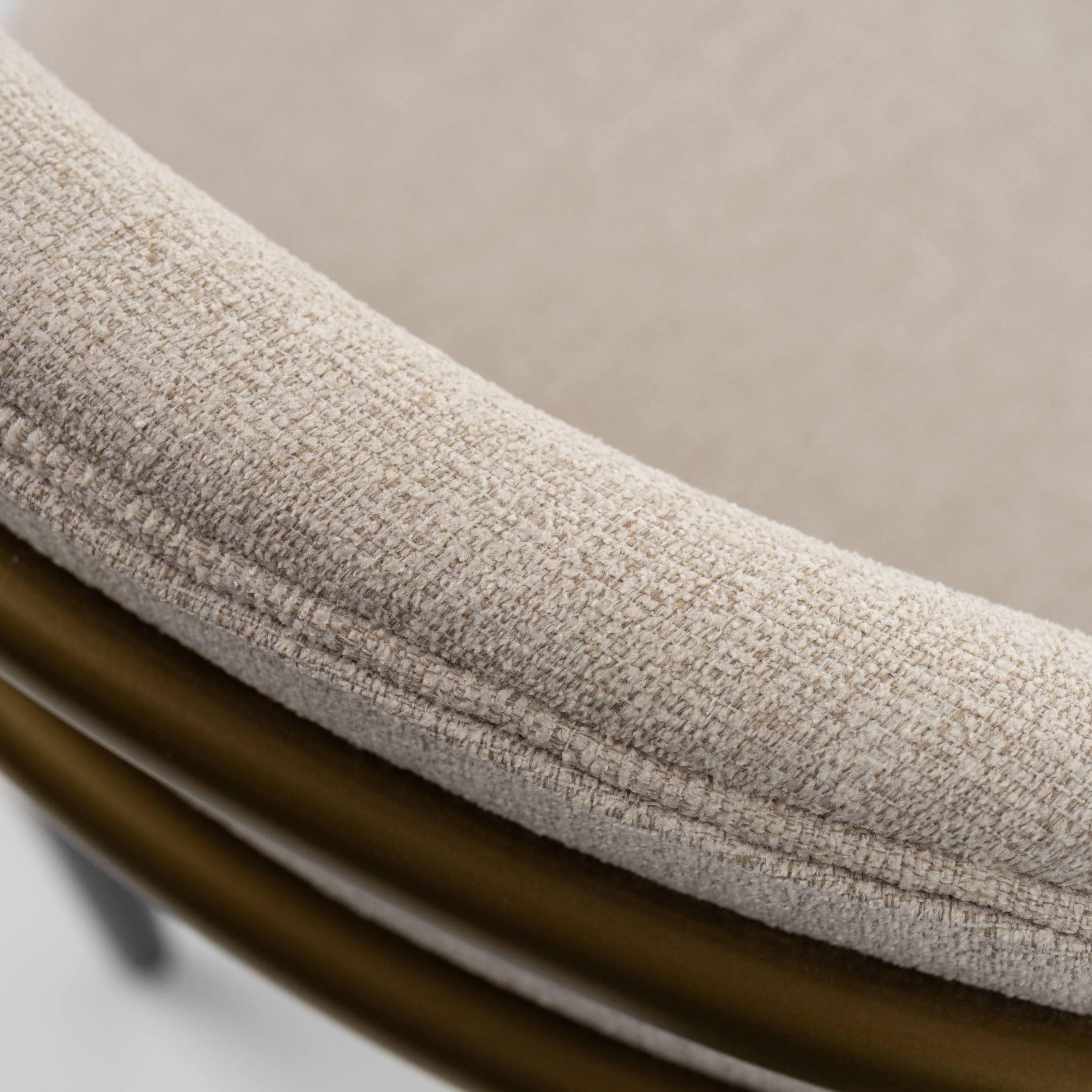 The Modrest Buchtel Dining Chair brings a touch of timeless mid-century modern elegance to any dining space. Wrapped in soft beige fabric, this chair is complemented by sleek black legs and refined gold accents on the armrests, creating a striking contrast that s both sophisticated and inviting. Its gently curved back and plush seating offer exceptional comfort, while the minimalistic design captures a sense of effortless style. A perfect blend of form and function, the Buchtel Dining Chair embodies a chic, understated luxury that will elevate the ambiance of any modern home.