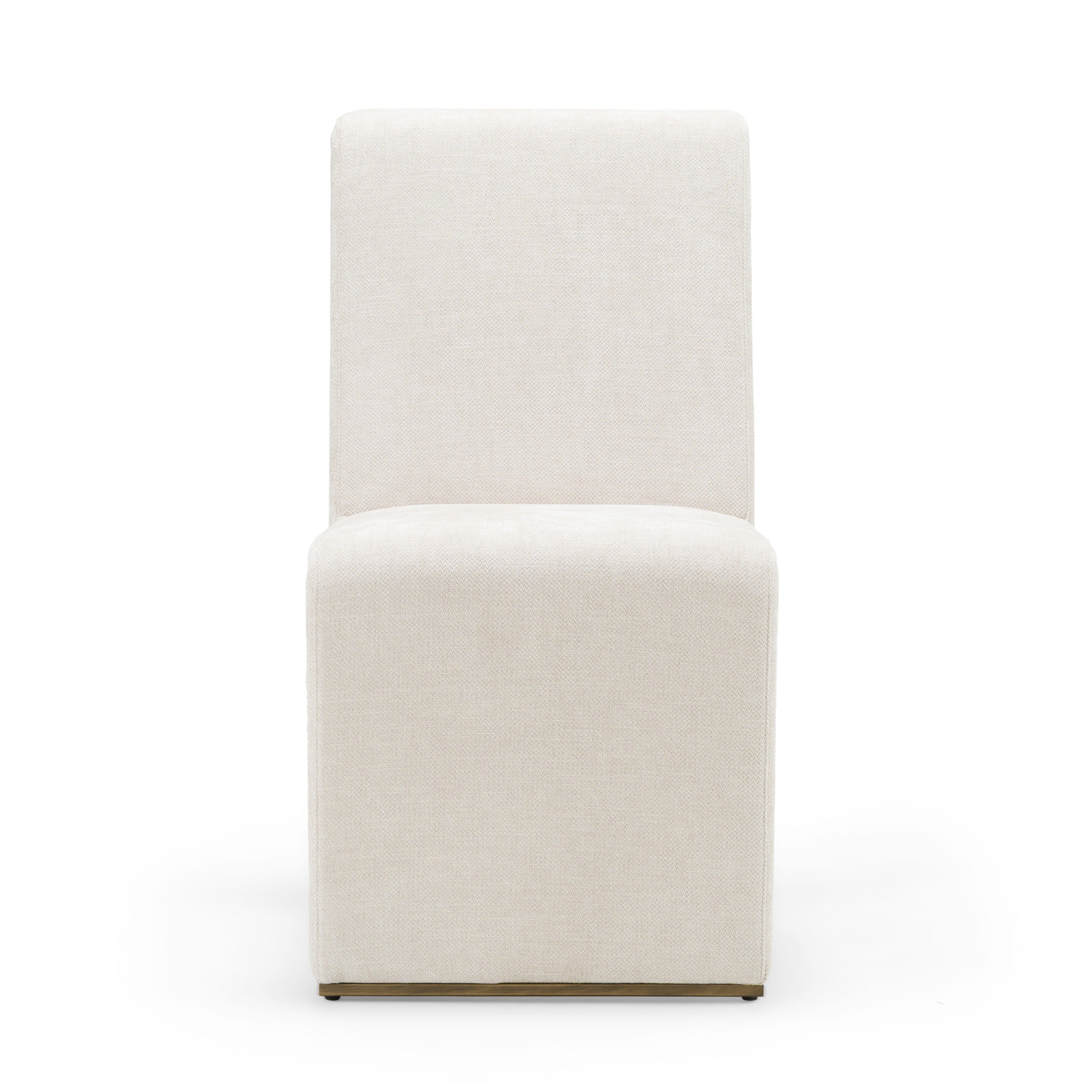 The Modrest Bounty Dining Chair Set offers a harmonious blend of contemporary sophistication and timeless charm. Upholstered in soft beige fabric, the chairs exude warmth and elegance, complemented by antique brass legs that add a subtle touch of luxury. Their solid back design and meticulous craftsmanship make them as comfortable as they are stylish. Perfect for elevating any dining space, these chairs bring a refined ambiance to your modern home, seamlessly merging function with high-end aesthetics. Imagine them gracing your dining room, creating a welcoming and polished atmosphere for every gathering.