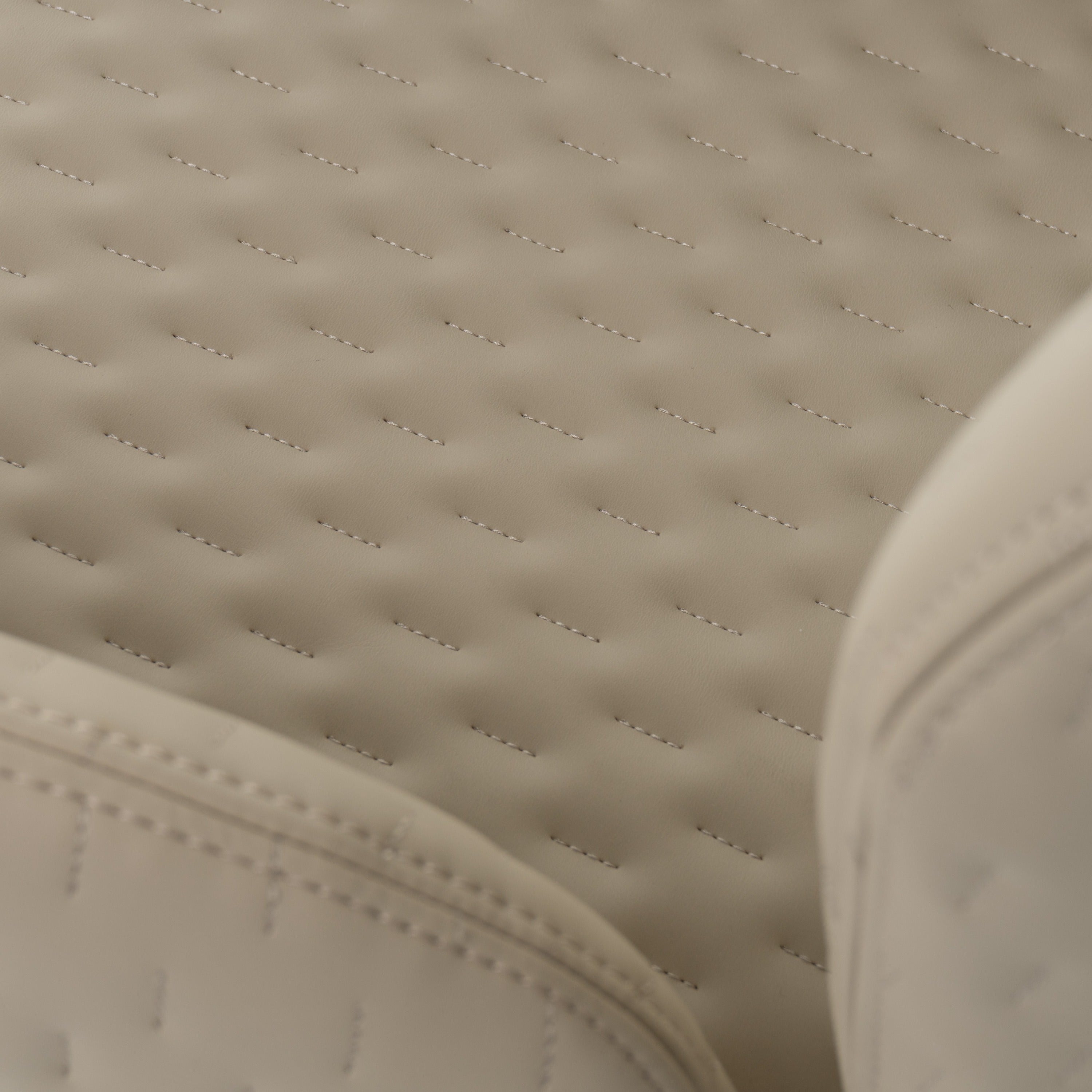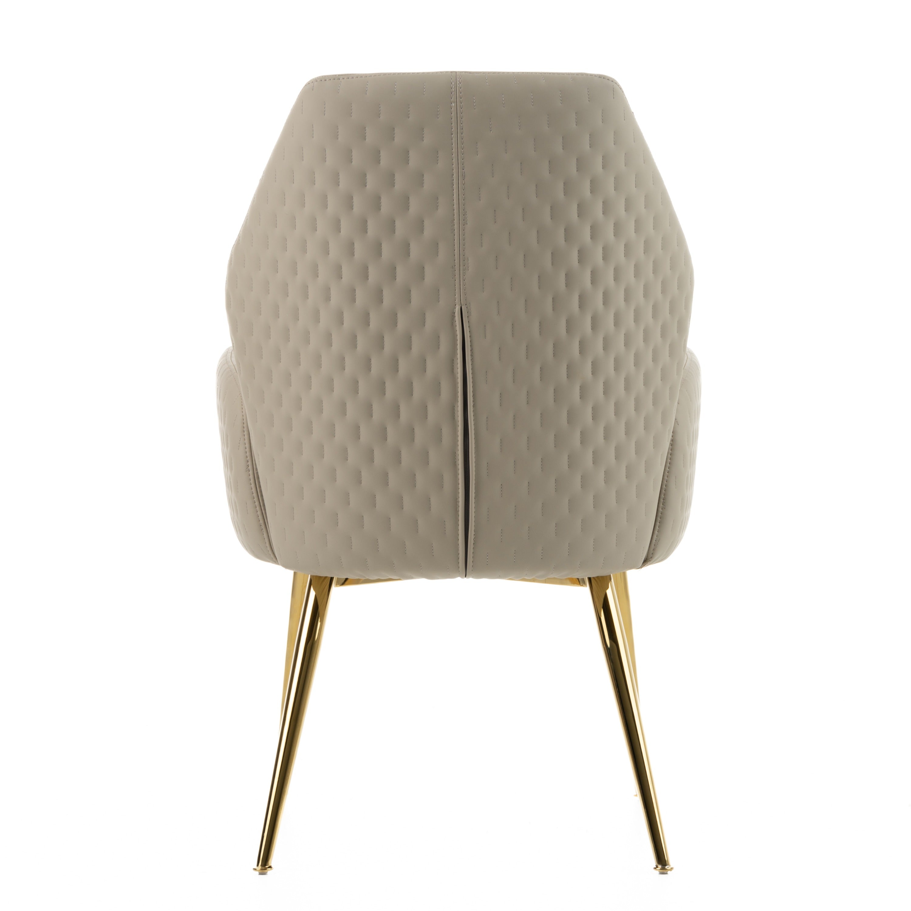 The Empress Dining Chair is an elegant upholstered dining chair. The cream fabric has a stitch detail that adds texture and visual interest. The hexagonal back makes it perfect for a traditional dining room. The tubular metal legs, finished in a champagne gold, give the structure stability while adding class and an industrial flair. Perfect for a mid-century style dining room.