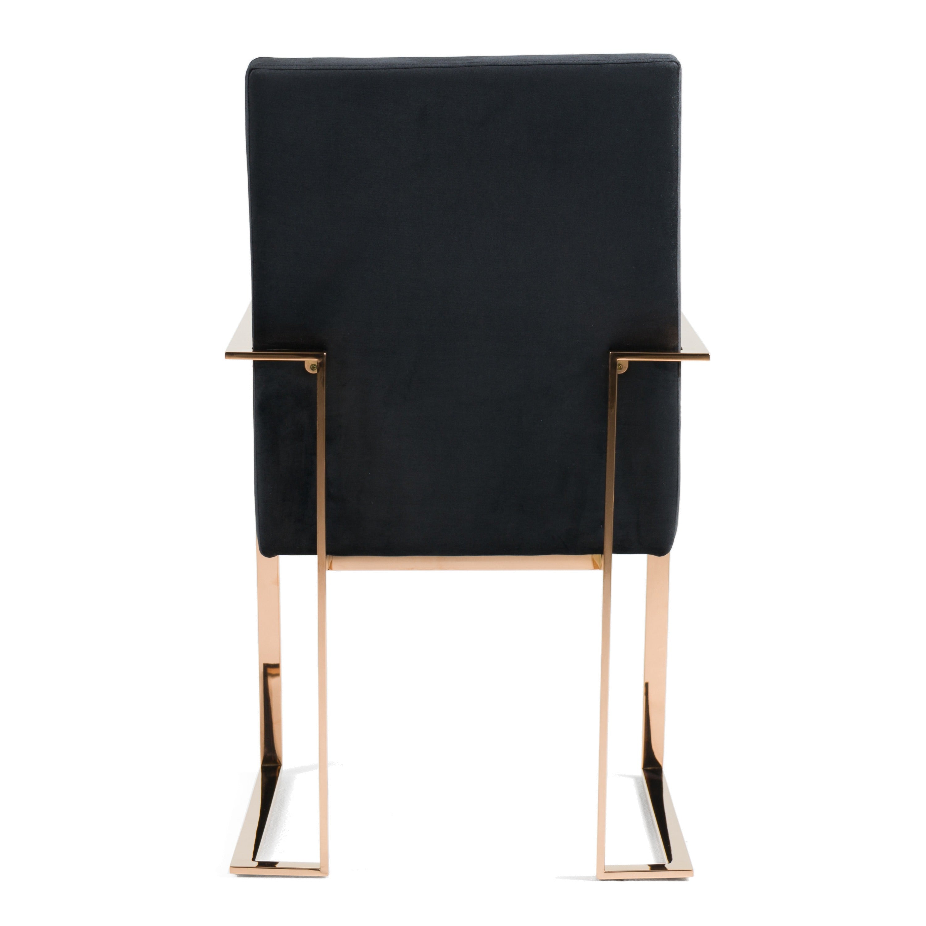 The Trea Dining Chair contrasts well with its soft-lined black velvet ergonomic seats scream comfort. The rose gold stainless steel frame holds a linear frame against the elegance of contrast in colors. This dining chair is perfect for a modern and sleek look.