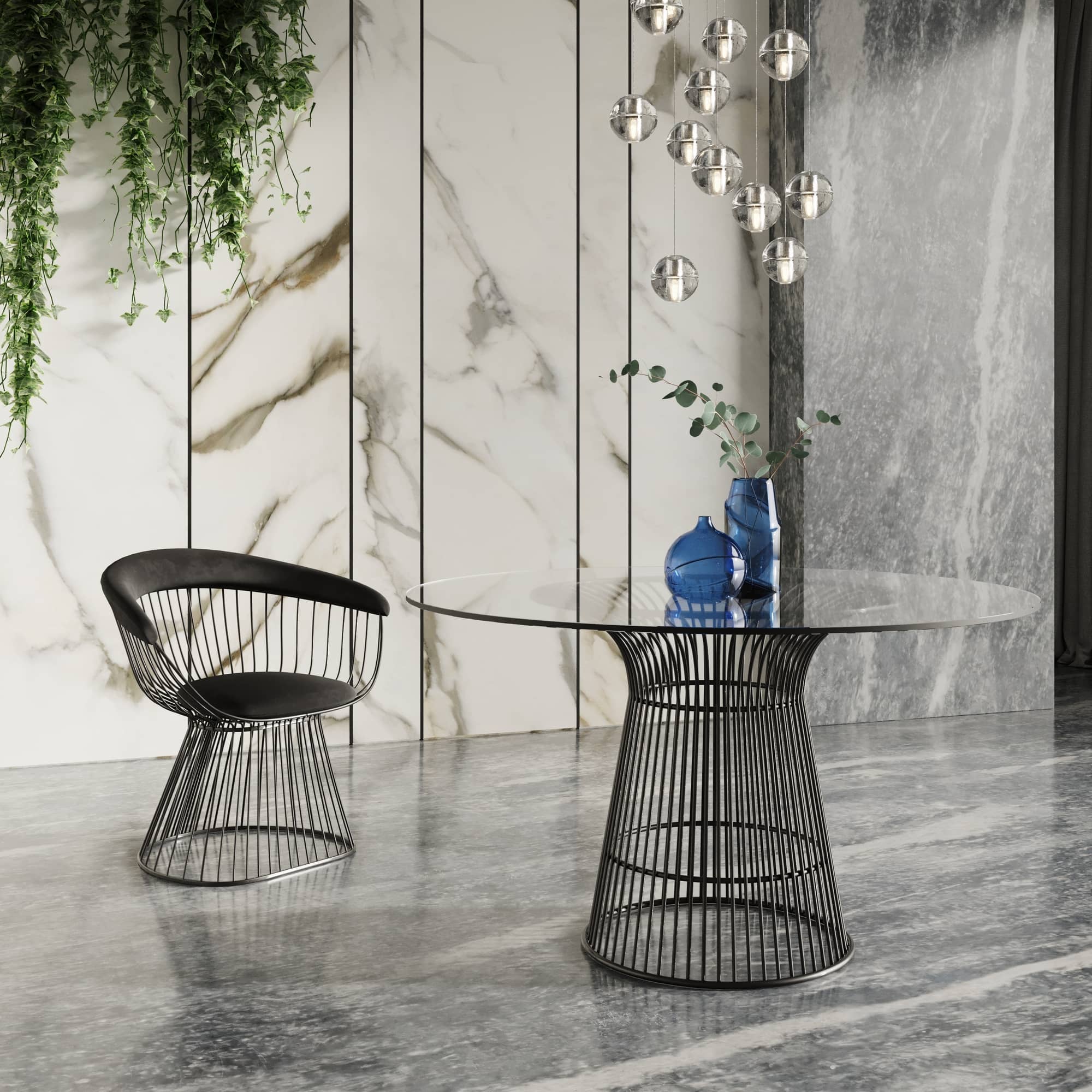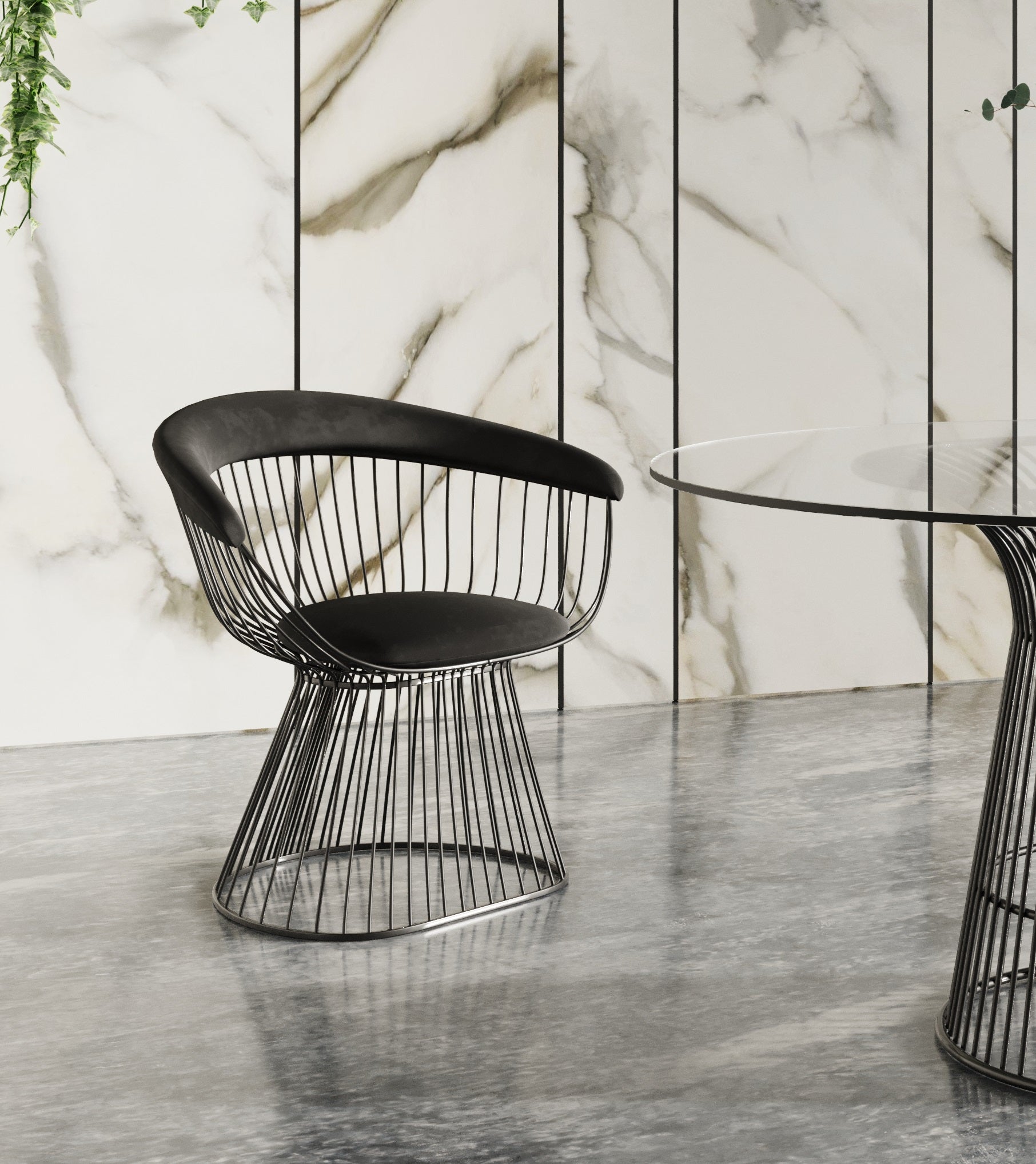The Chandler Dining Chair offers a luxurious and stunning look to any dining room. Gleaming with elegance from the polished black stainless-steel base and Windsor back this is the perfect addition to any bright and modern motif.