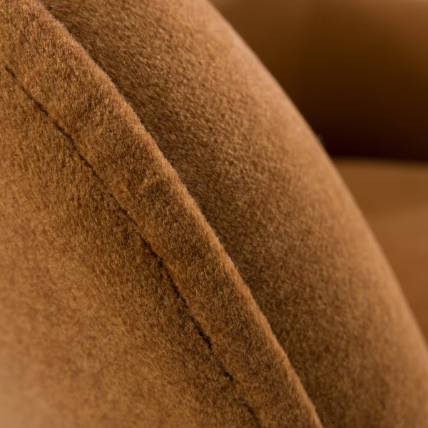 Experience an artful blend of modern elegance and inviting comfort with the Modrest Risa Swivel Dining Chair in rust-hued fabric. Its soft, mohair-inspired upholstery envelops a sculptural silhouette, creating a warm yet sophisticated ambiance. With a fluid, curved form that invites relaxation and effortless swiveling motion, this chair becomes both a functional and striking centerpiece, perfect for those who seek a touch of understated luxury and craftsmanship in their modern home.