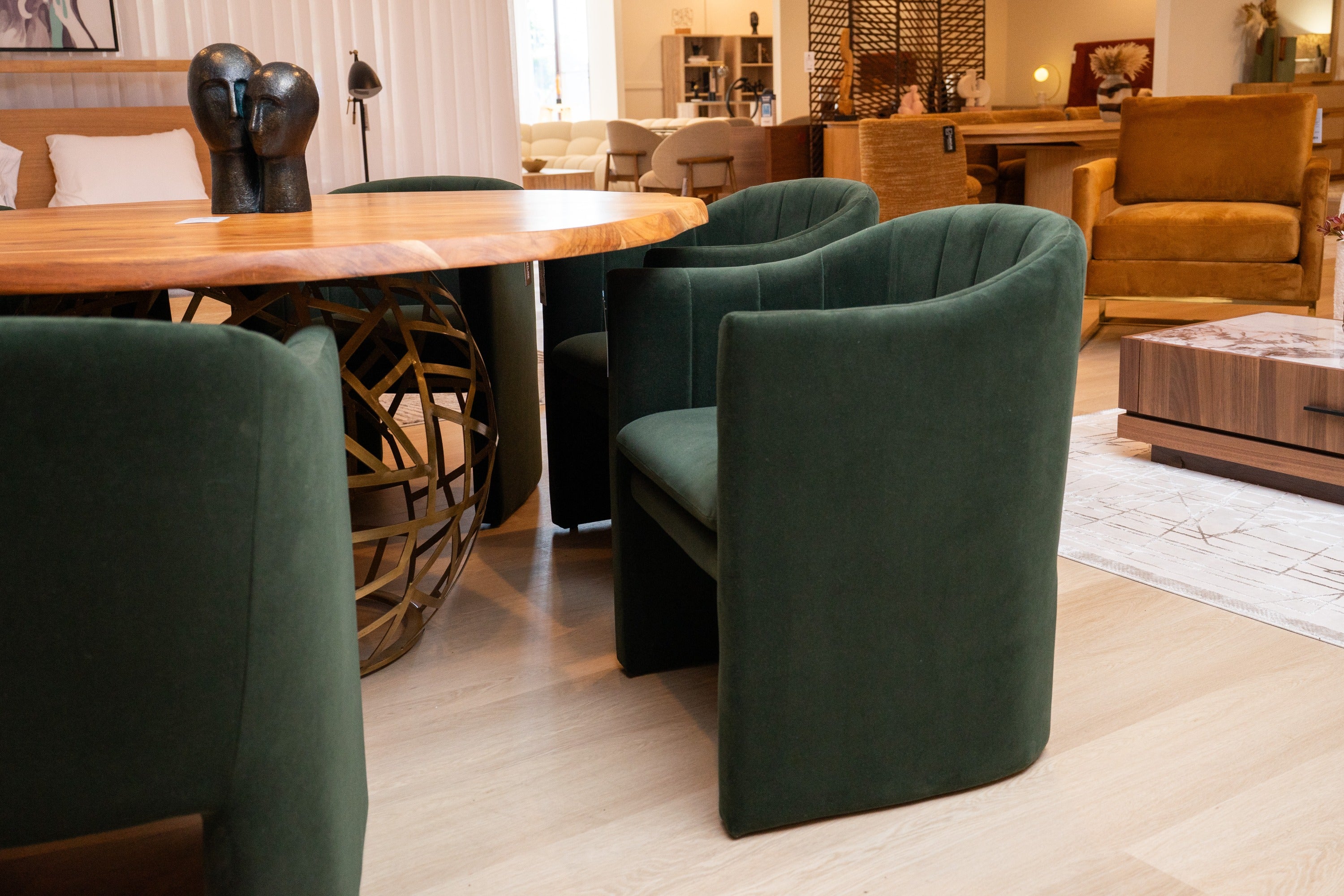 The Danube Modern Dining Chair is a perfect collection of curvilinear lines and soft velvet upholstery to stimulate the eye of its beholder. The modern shape is offset by the mid-century upholstery. Perfect with a walnut dining table to create a stylish dining experience.