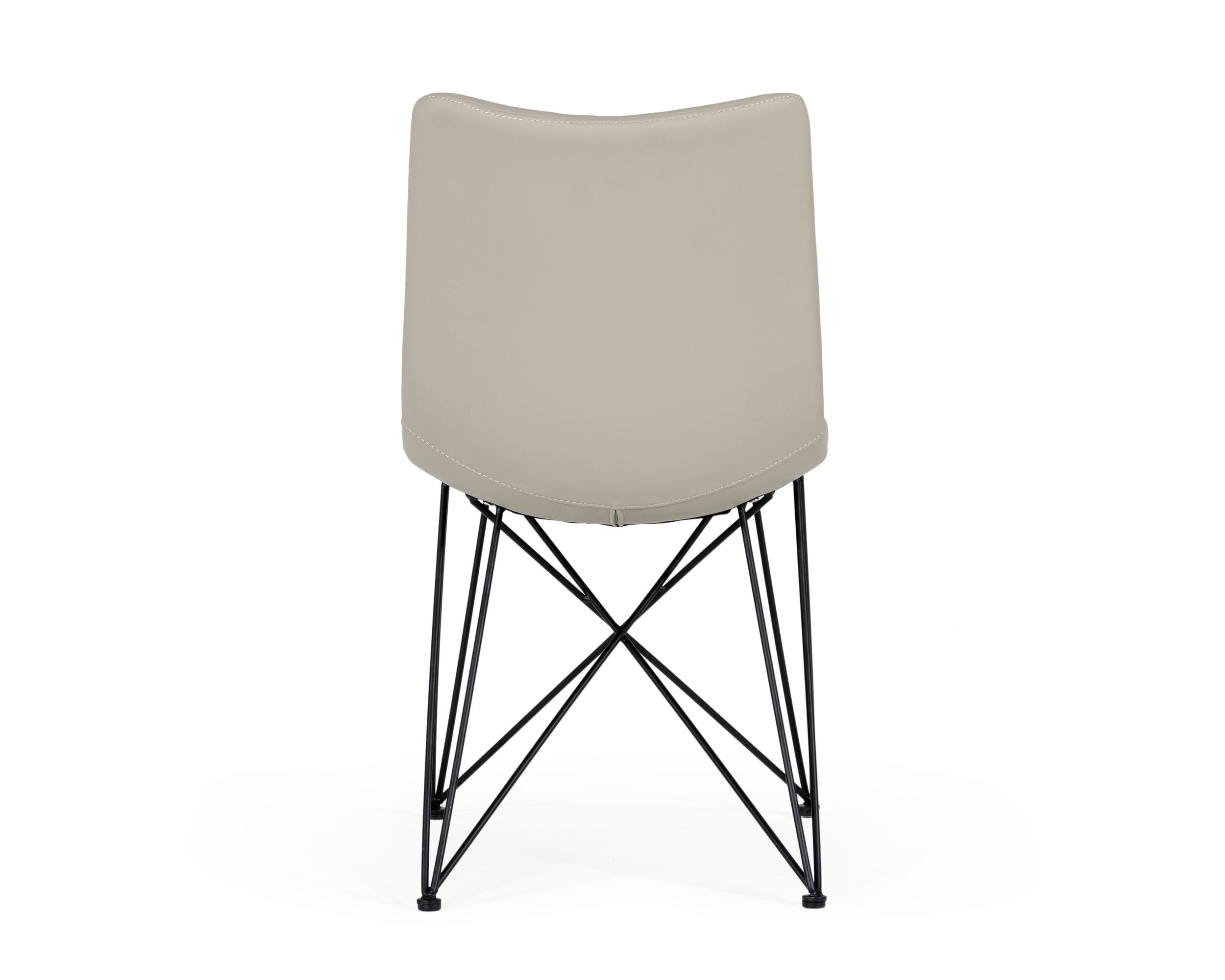 The Modrest Naomi Modern Grey Leatherette Dining Chair is a stylishly constructed piece that modifies the look of the dining chair. Featuring a grey upholstered leatherette seat and a creased back front design, it is perched on interlaced black powder coated metal legs that add flair to a typically simple dining chair. Foot caps on the legs protect your floors.