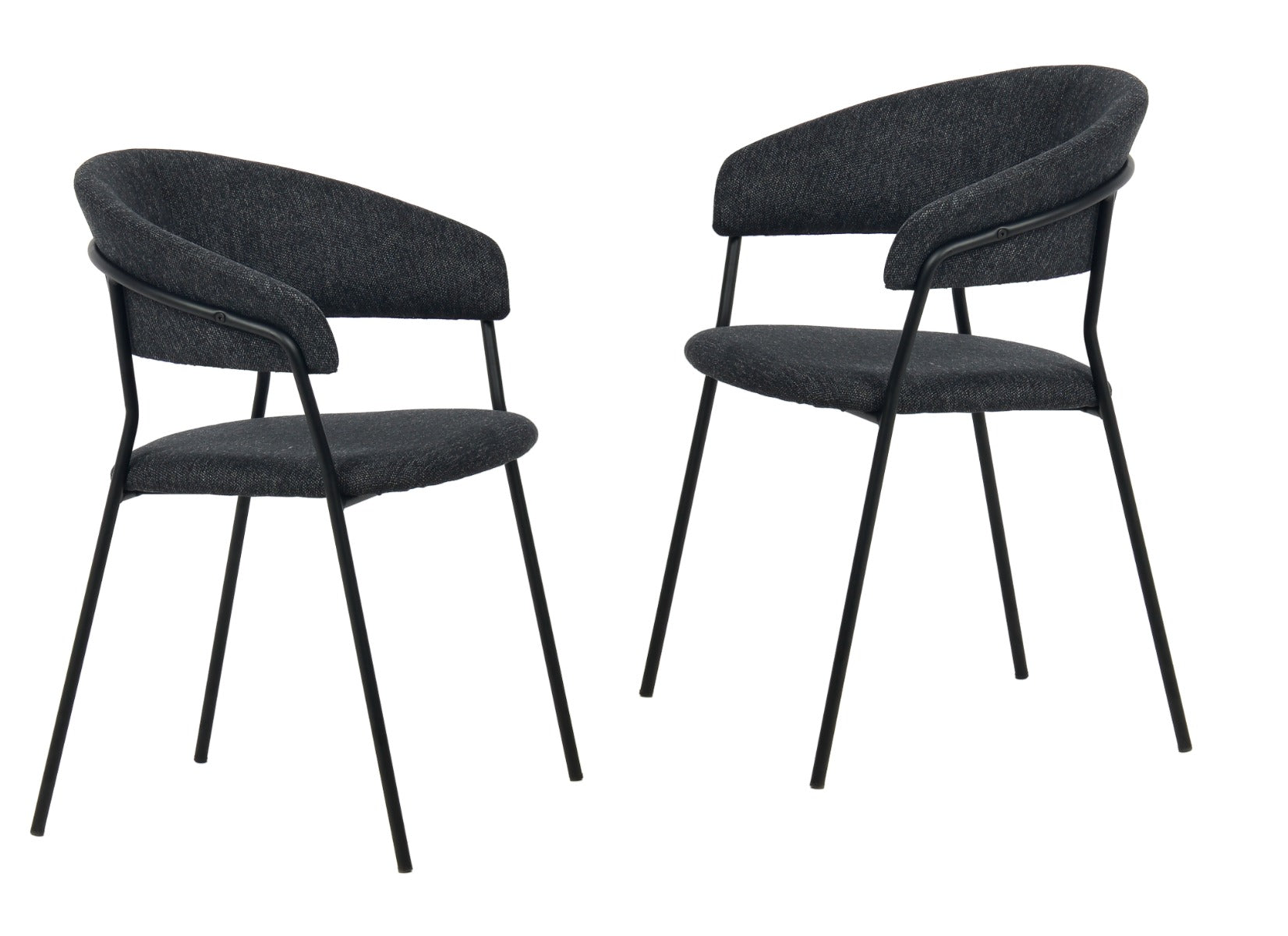 The Modrest Marlynn Dining Chair is available in a pair of two, making it the ideal choice for anybody wishing to add a refined elegance to their dining area. A black metal frame complements the dark grey woven fabric that beautifully wraps a rounded seatback. Marlynn highlights it's ergonomical design with a broad backrest that hugs the curves of your body, providing for excellent seating comfort.