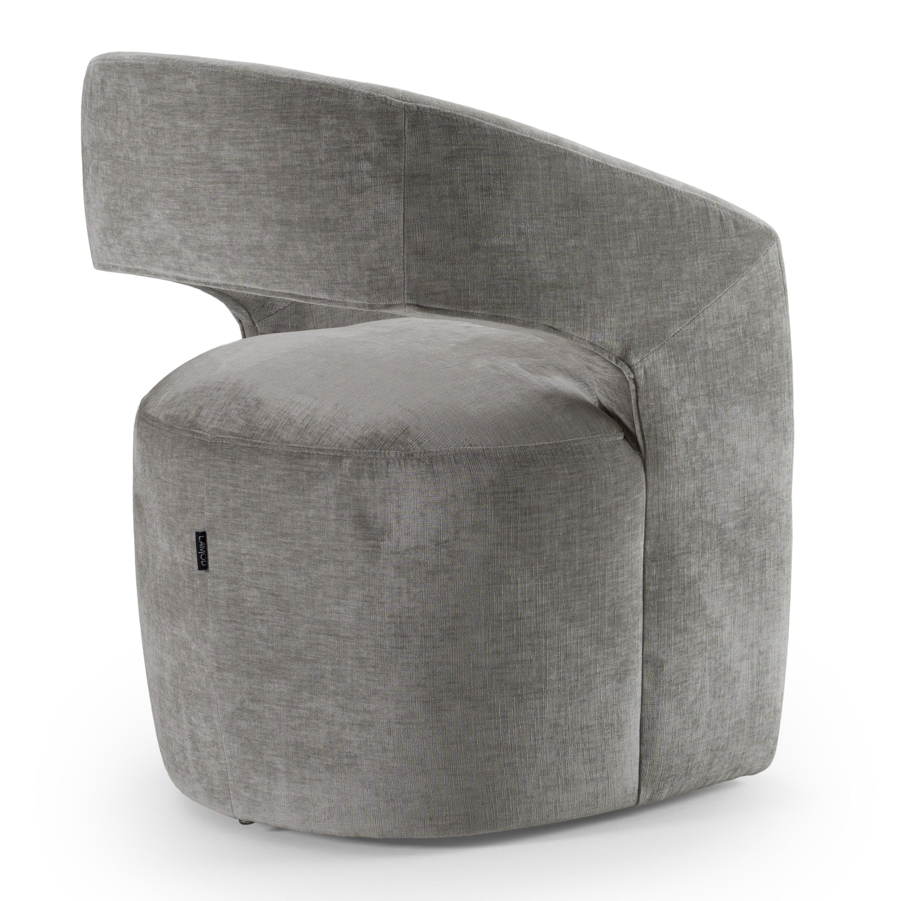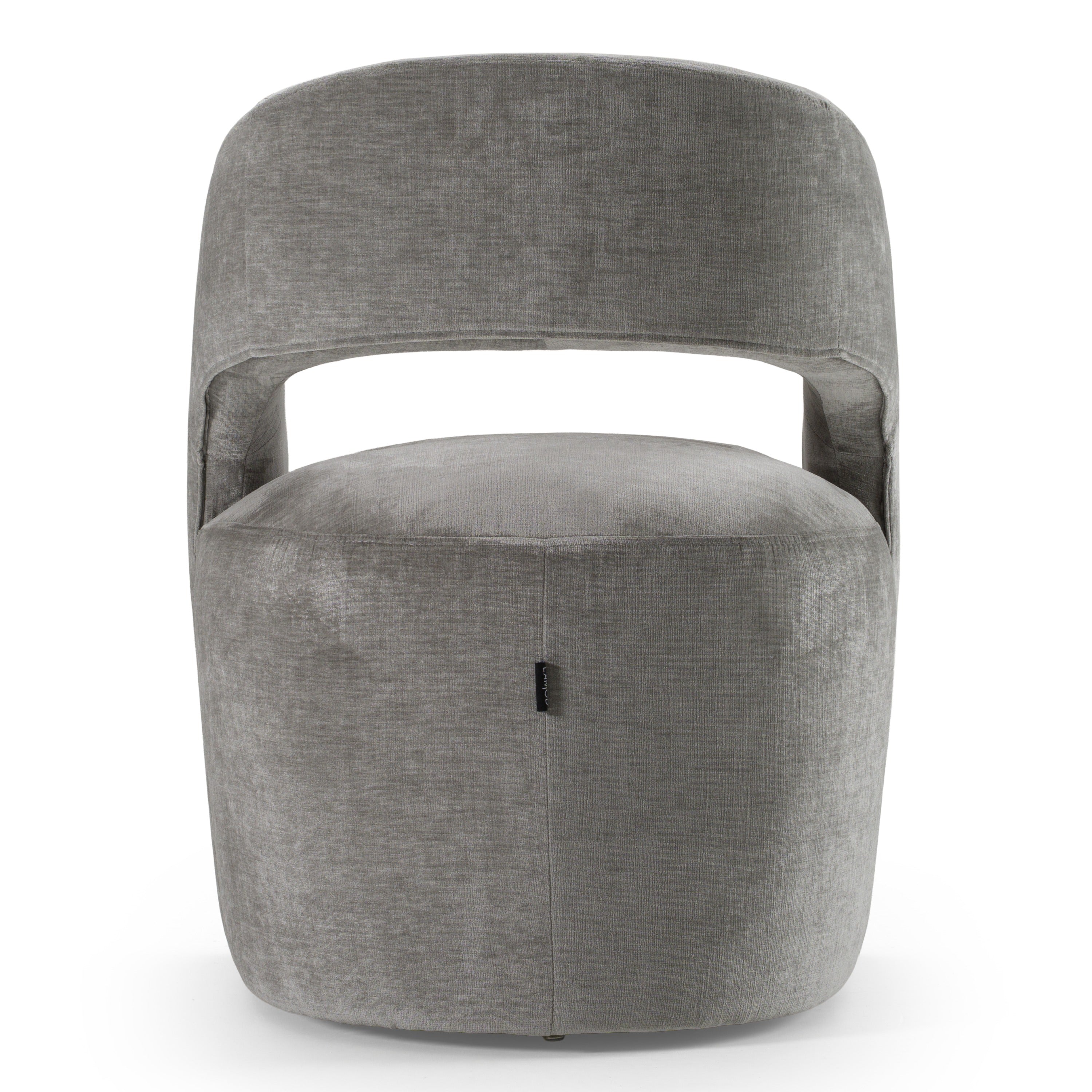 Our Angie Accent Chair has a simple silhouette and contemporary aesthetic with clean lines. With sleek, inviting contours and cut out back that makes for an Art Deco feel. Foam wrapped in a textured grey fabric makes this a desirable choice to brighten any room.