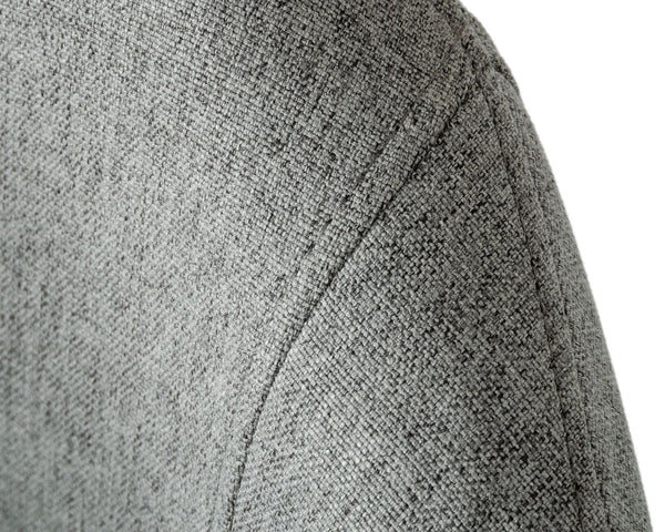 The classic silhouette of the Keller Dining Chair is just what you have been looking for. The grey linen fabric wraps the entirety of the frame, fully encompassing contemporary beauty. High wing style arm rests seamlessly meld with the curvilinear back. Fully upholstered legs finish this lovely item.