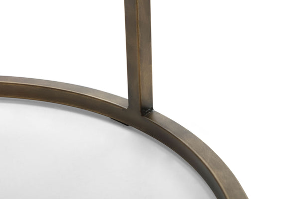 The soft off-white upholstery of the Elisa Dining Chair wraps around the stylish silhouette creating modern lines that add glamour to the textured piece. An antique brass base offsets the soft white fabric. A curved back and cushioned seat create all-around comfort.