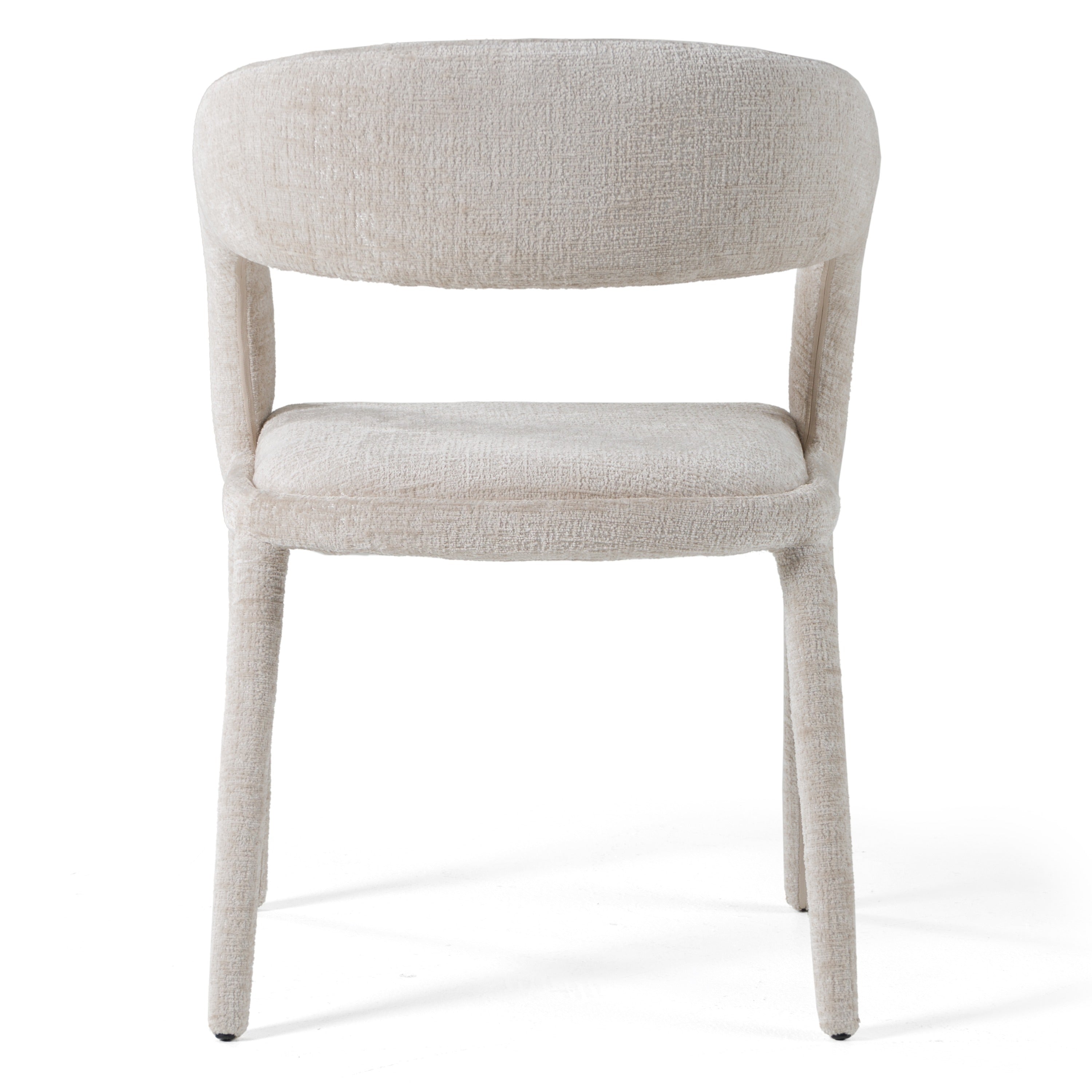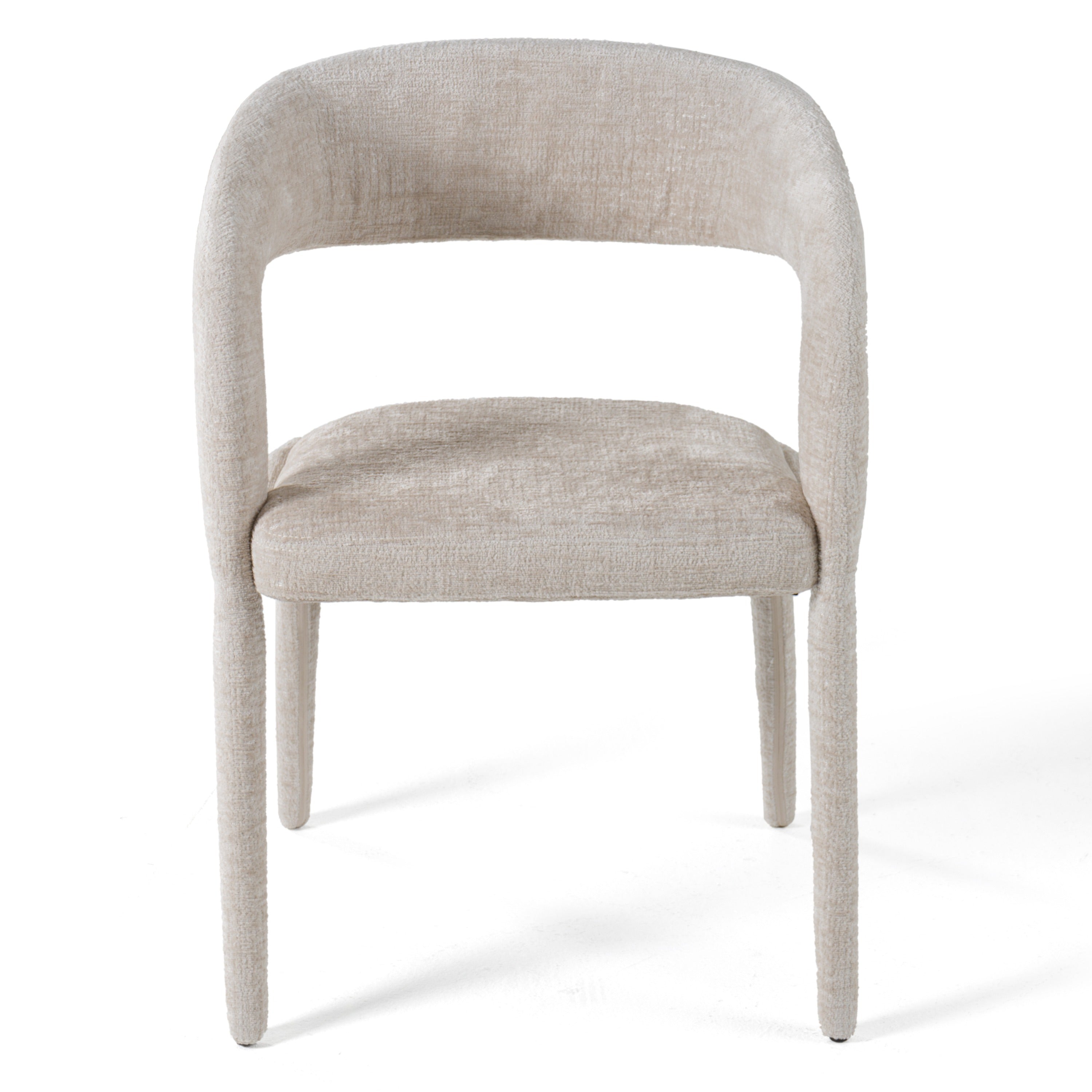 The Modrest Faerron is a striking modern dining chair that features a sleek, light grey fabric upholstery, adding a touch of contemporary elegance to any dining space. Its unique curved backrest and armrests provide both comfort and style, creating an inviting atmosphere. The minimalist design, complemented by gently contoured legs, ensures this chair seamlessly fits into various decor styles, making it a perfect choice for sophisticated dining settings.