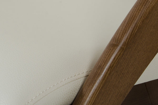 The Lucas Dining Chair is the perfect mid-century style dining accessory for your space. The tapered walnut ash wood frame is right out of the mod movement, perfect and timelessly executed. Cream vegan leather upholstery stretches across the stylish seat and back, creating contrast and comfort. Pair with one of our lovely walnut tables for a perfect match.