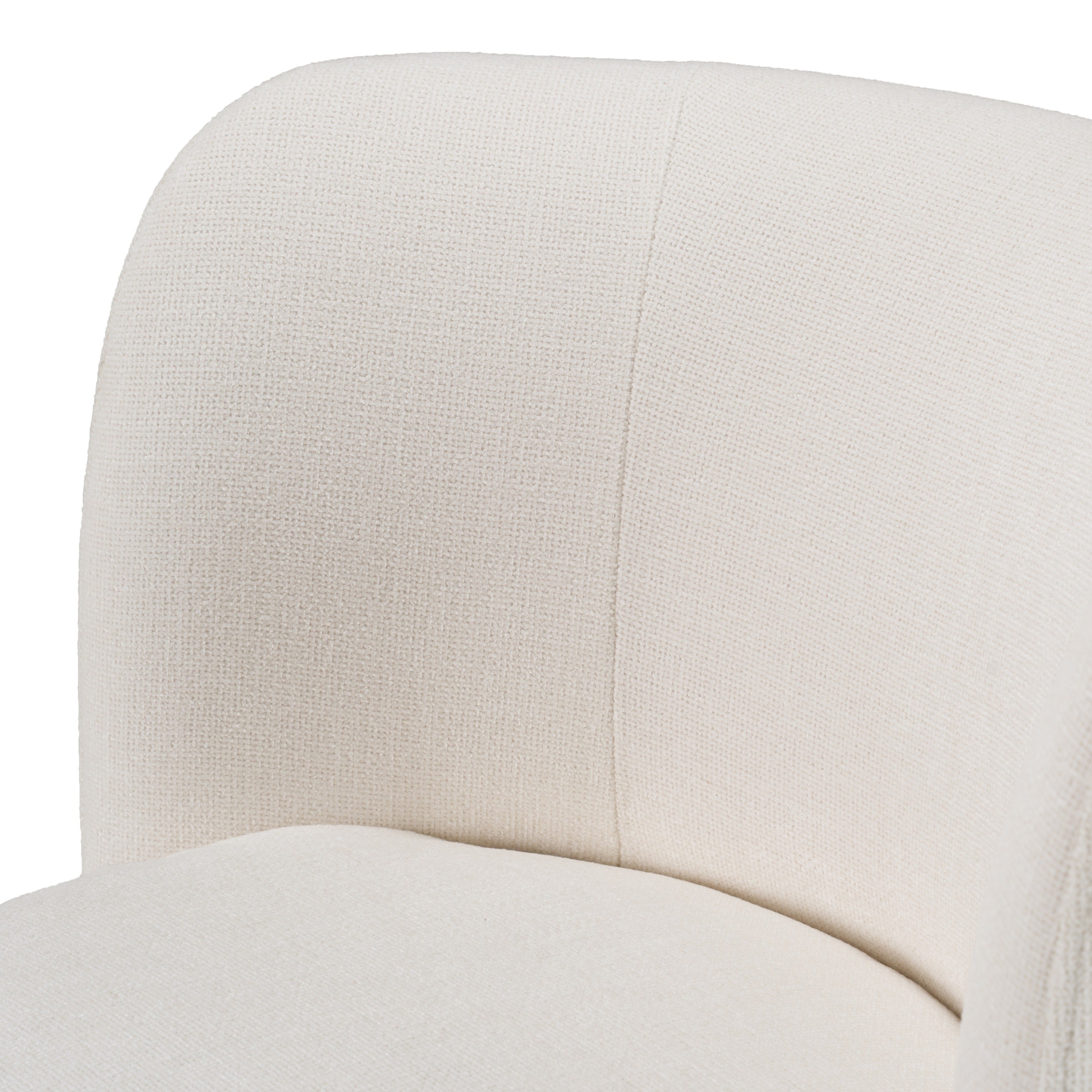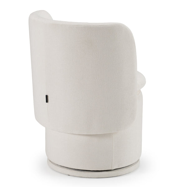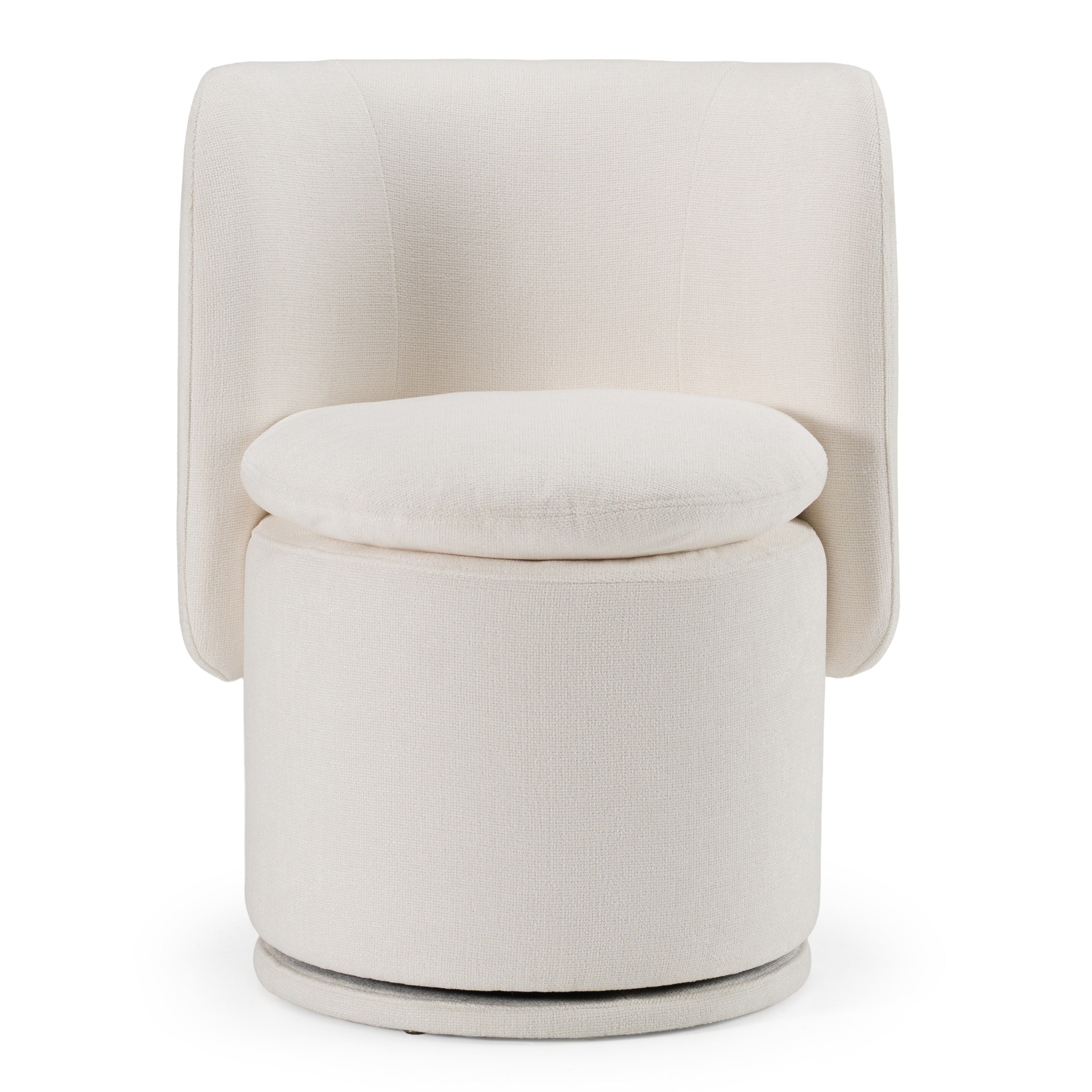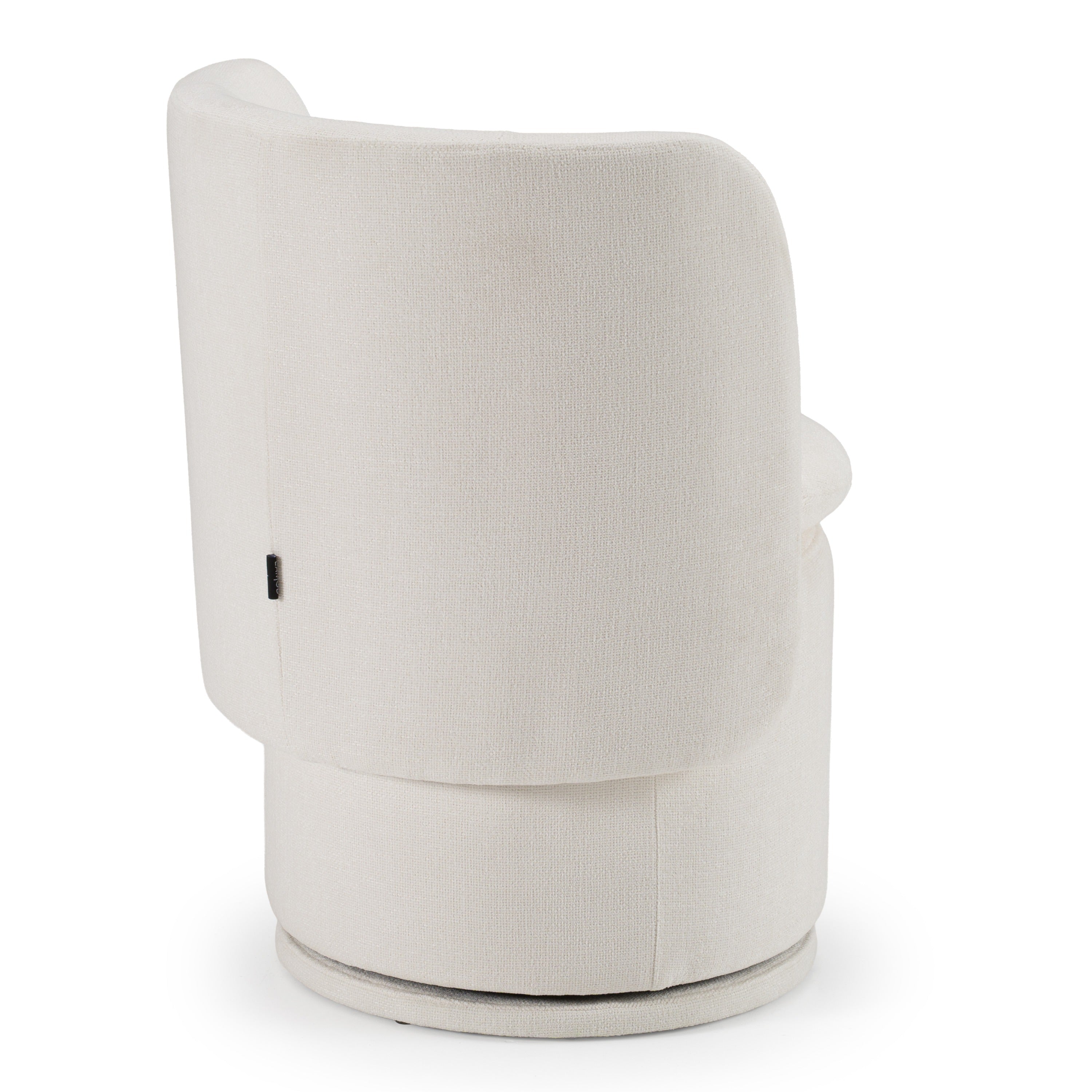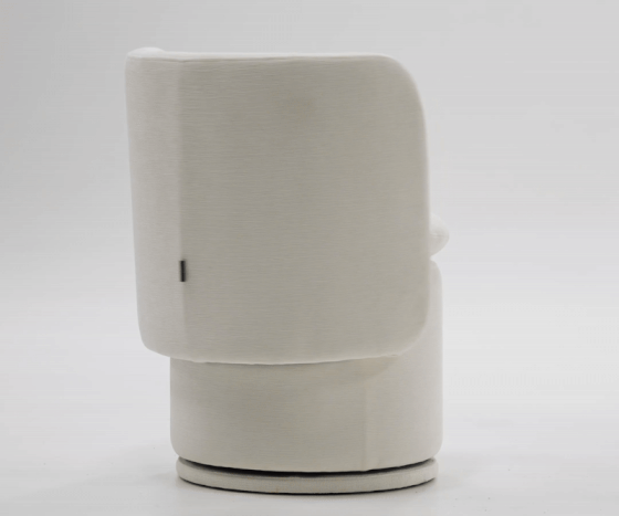 The Norris Dining Swivel chair brings style and originality to your dining room! This modern chair features a rounded and sloped design that offers stylish, comfortable seating. The Norris is upholstered in Joyce ivory fabric, the perfect neutral to compliment any modern dining space. The swivel base allows for a full 360 ° rotation. The collection also includes a matching three-seater sofa and swivel accent chair perfect for your living space.