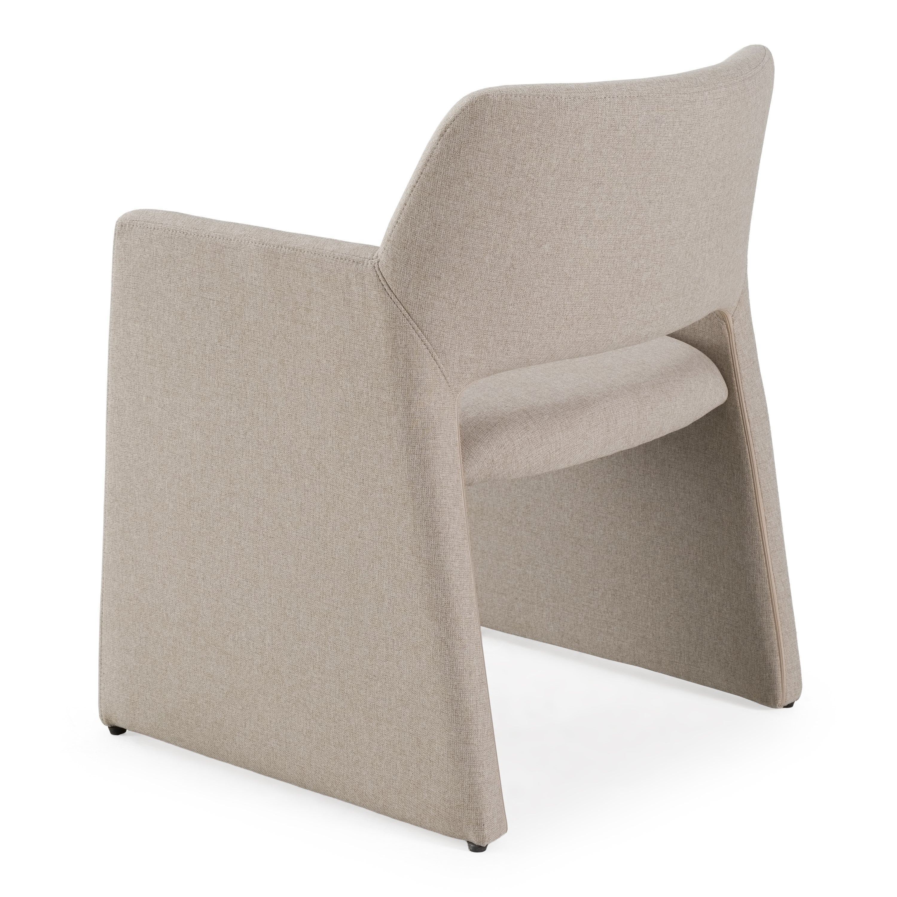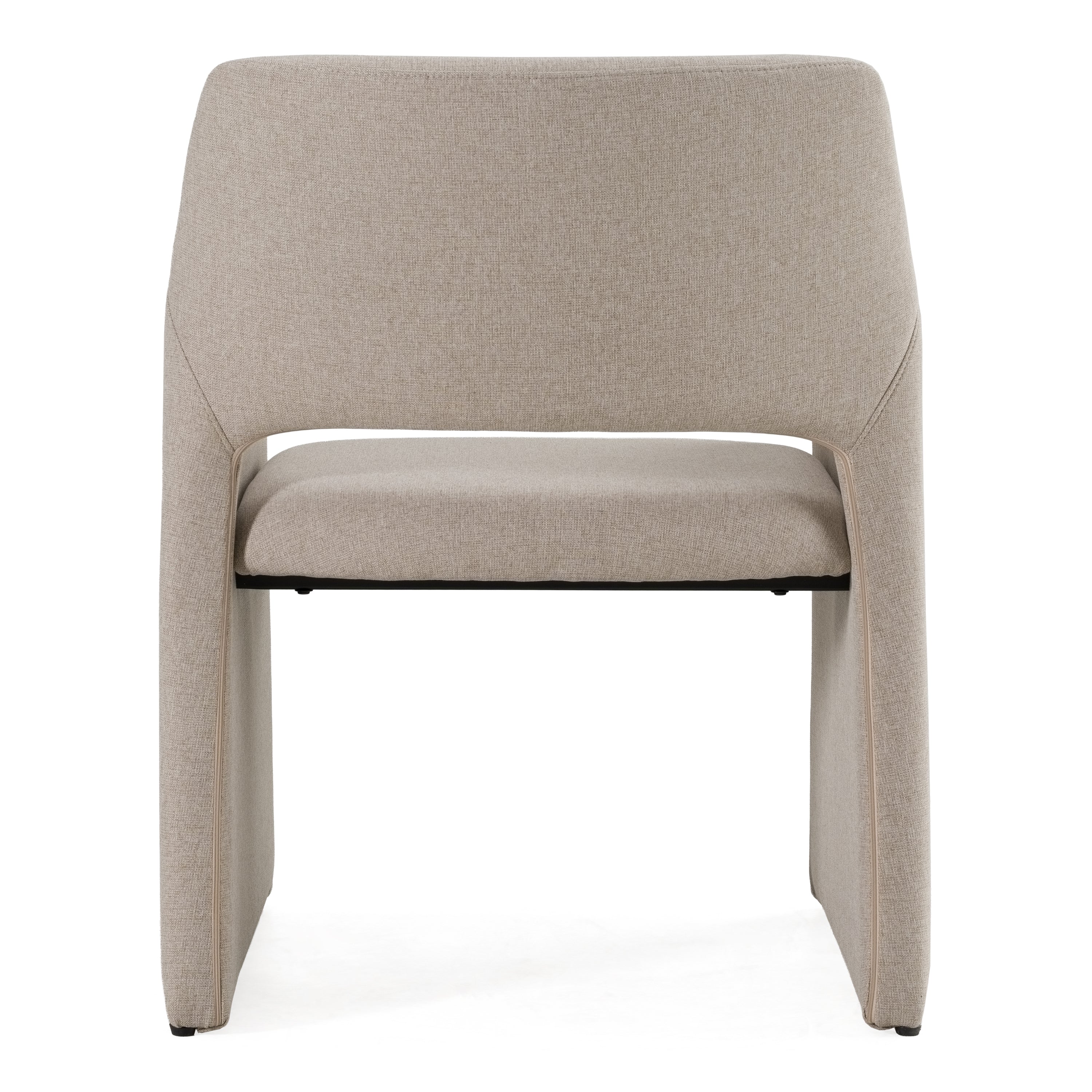 The Modrest Lasara Dining Chair exudes modern elegance with its clean lines and minimalist design. Upholstered in a soft beige fabric, it features a contoured backrest and comfortably wide armrests, providing both style and comfort. The sleek, angular sides enhance its contemporary appeal, making it a perfect addition to any dining space. This chair effortlessly combines functionality with a chic aesthetic, elevating your dining experience with its sophisticated yet inviting presence.