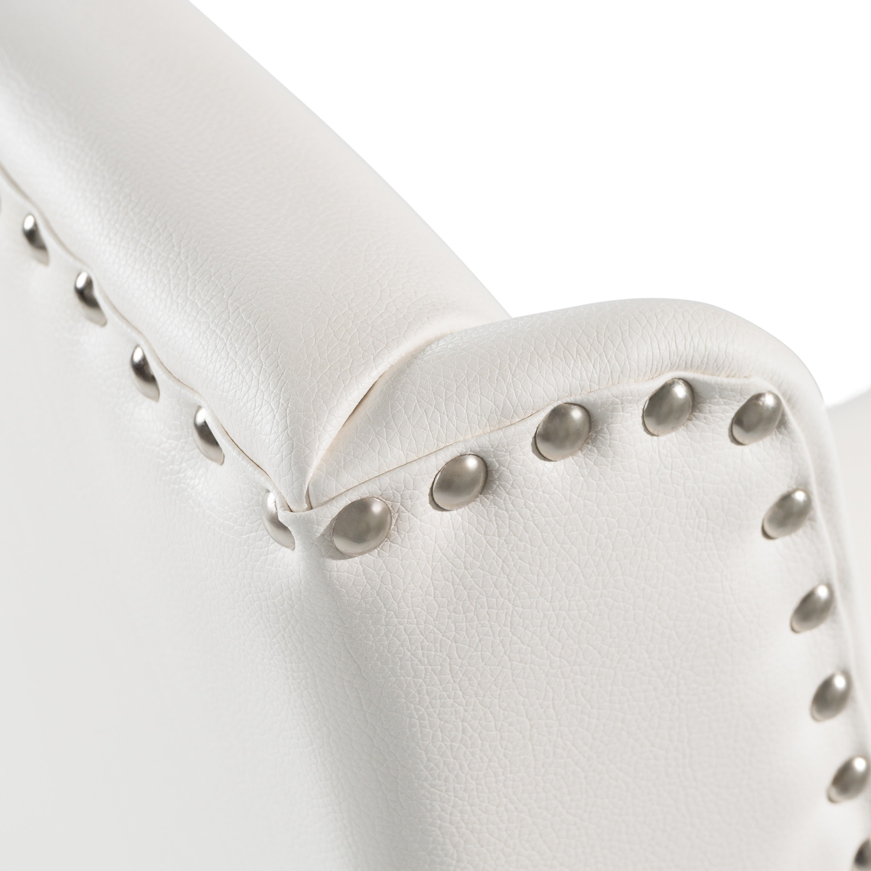 Brimming with modern style is the Alexia Dining Chair. Framed in rose gold steel and wrapped in sleek white vegan leather, this dining chair features a wing back that descends downwards to the full seat. Contemporary nailhead trims adorn the edges of the seat and the back. A crossbar fortifies the support of the X-shaped Rose gold steel legs. This classy dining chair can also function as an accent or office chair.