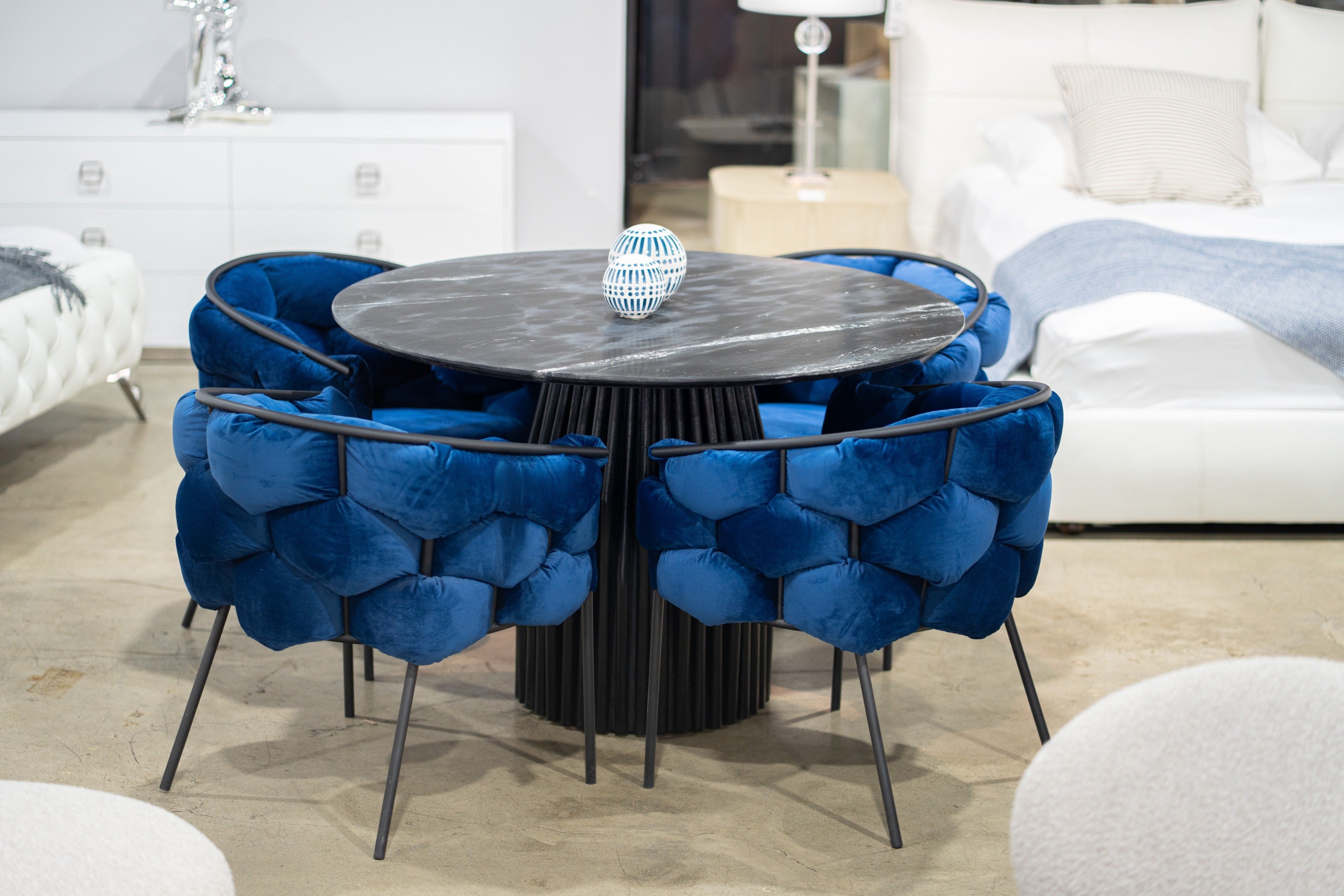 This is a Beautiful and Quality Modrest Jenna Modern Black Marble & Black Mango Round Dining Table Model VGBR-SBA-4227-BLK