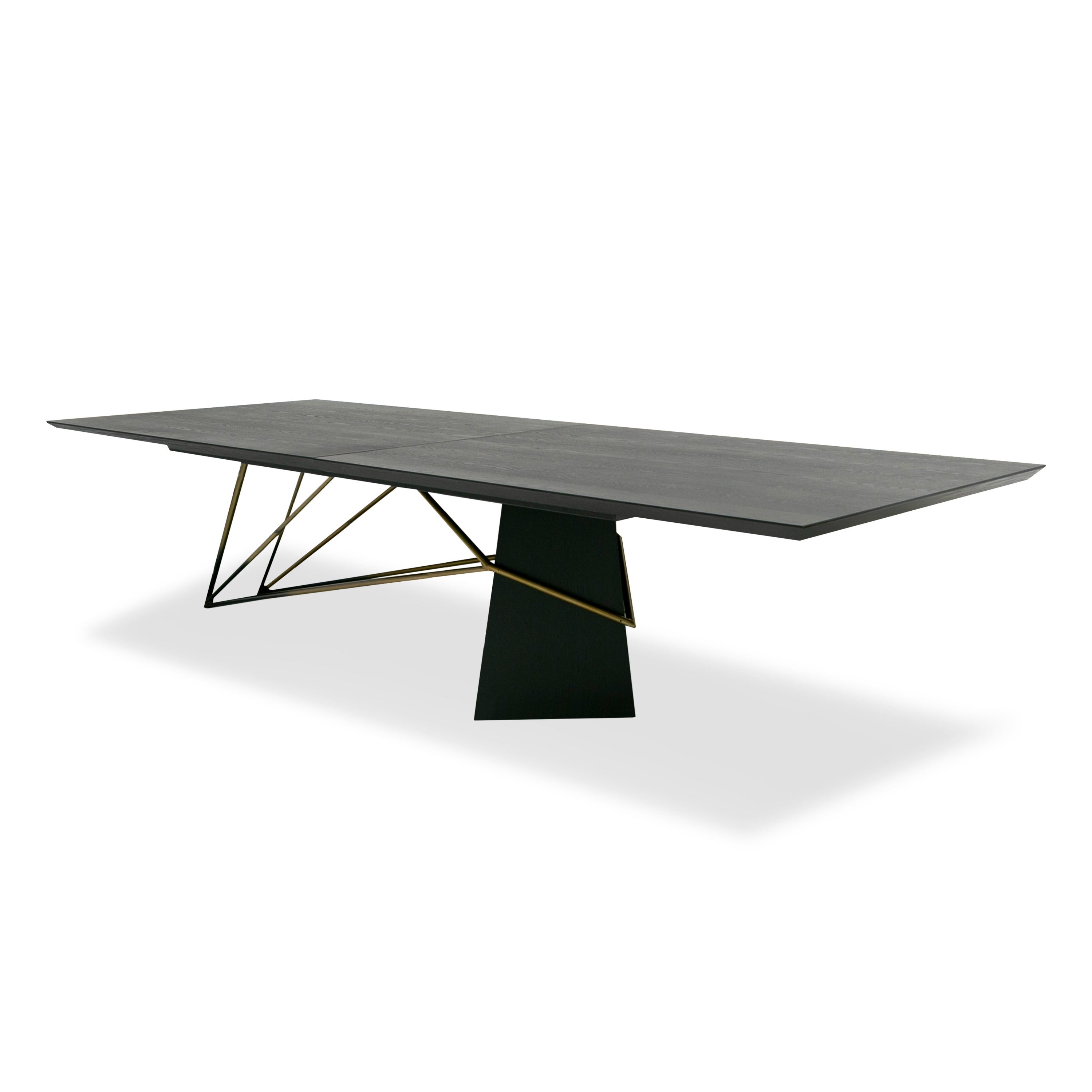 The Modrest Elkhorn is a fantastic dining table for adding a glam charm and elegance to your dining room! This table sports a stunning abstract design with Matte Black Ash Wood top wood and combination wood-metal base that offers a stylish and unique dining experience. The Elkhorn combines excellent quality materials and superb design that makes it a stunner in any space. Seats up to 10 people, perfect for family dinners and the holidays! Pair with the Elmira Sideboard/Buffet for Radiance.