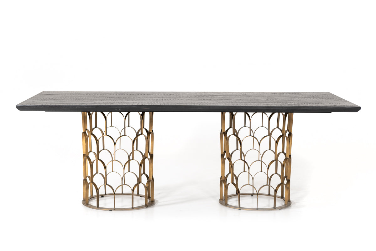 Modrest Natalie Modern Black Acacia & Antique Brass Dining Table Model VGLBGATS-DT220-03