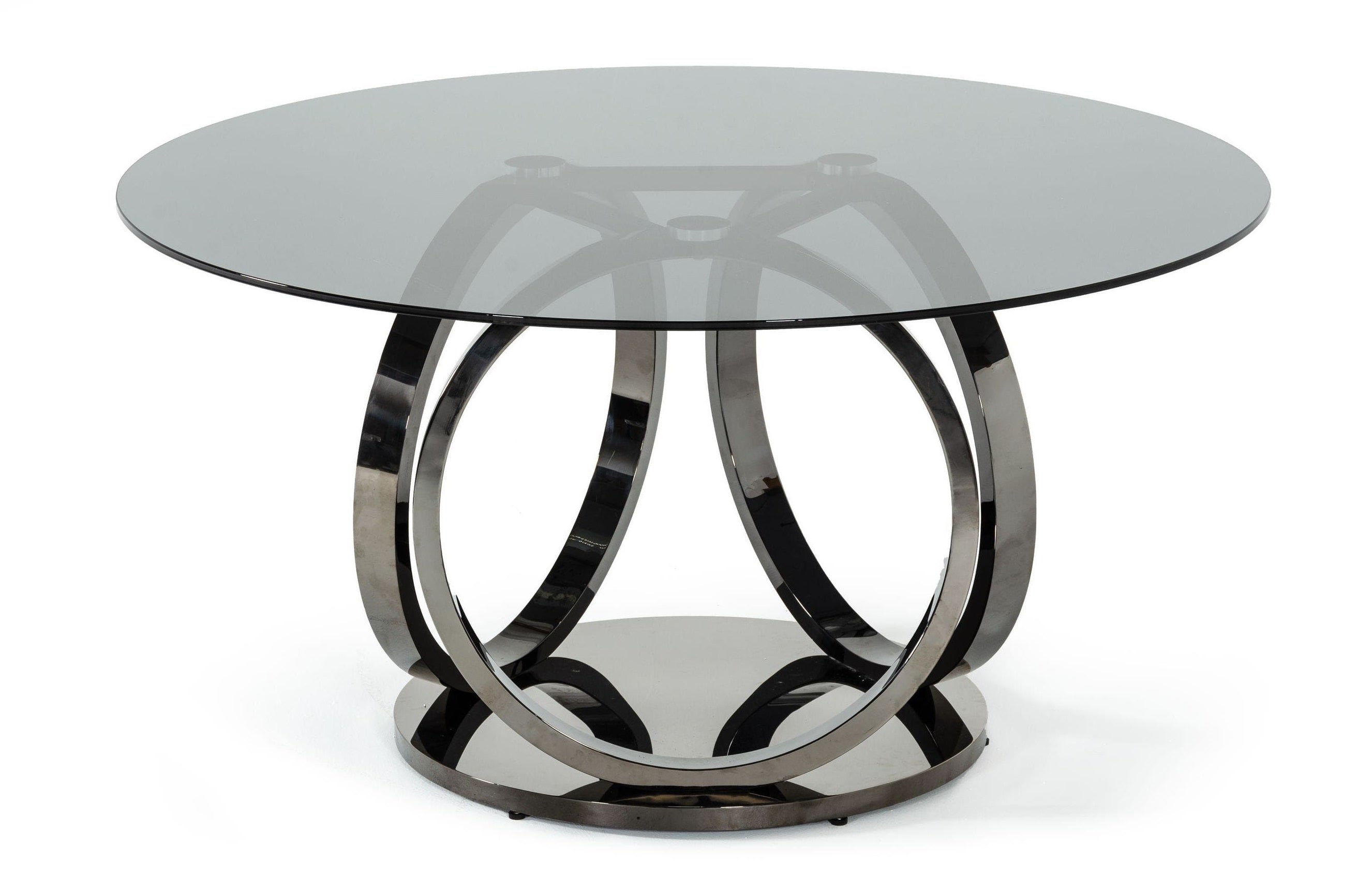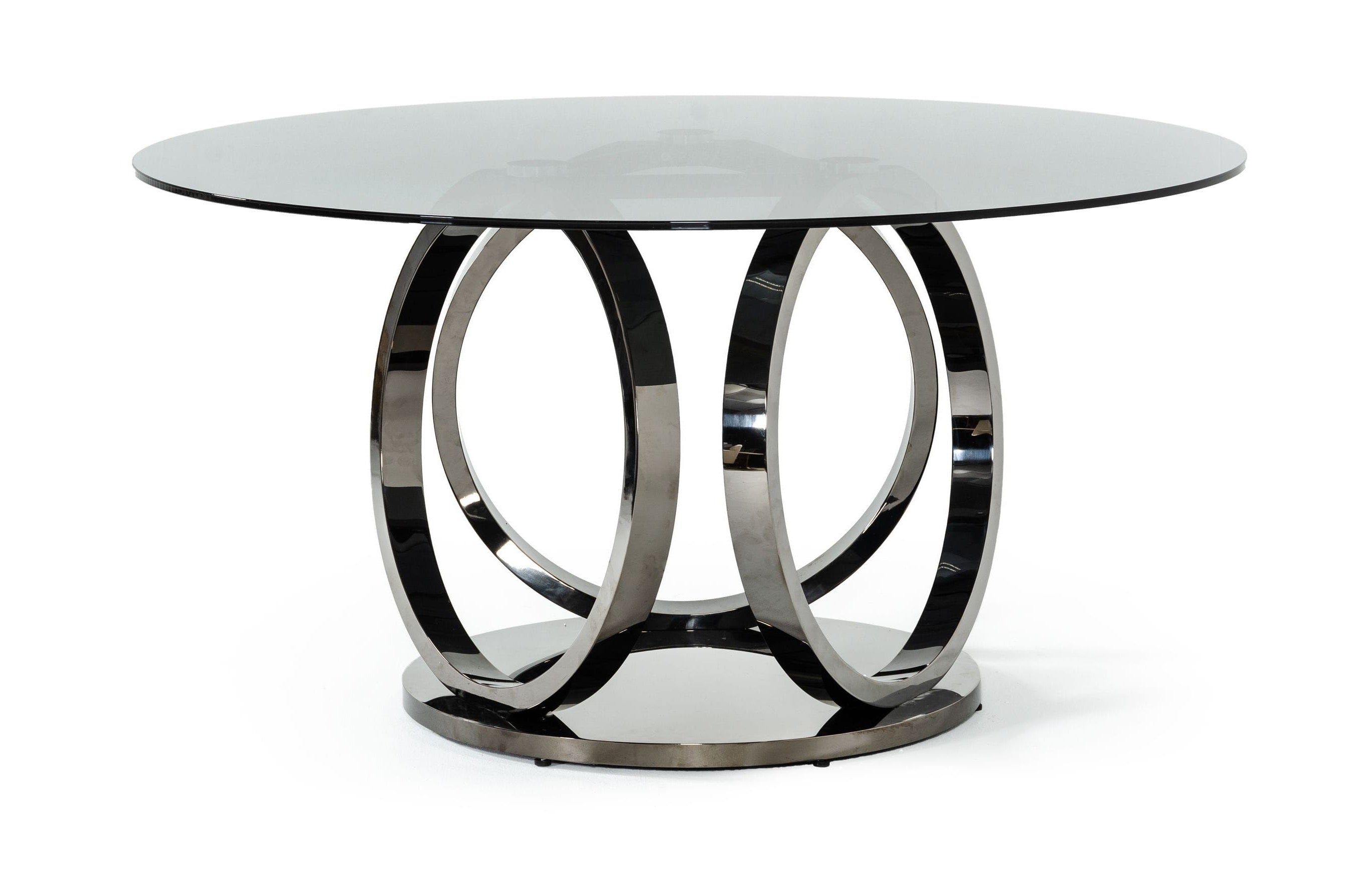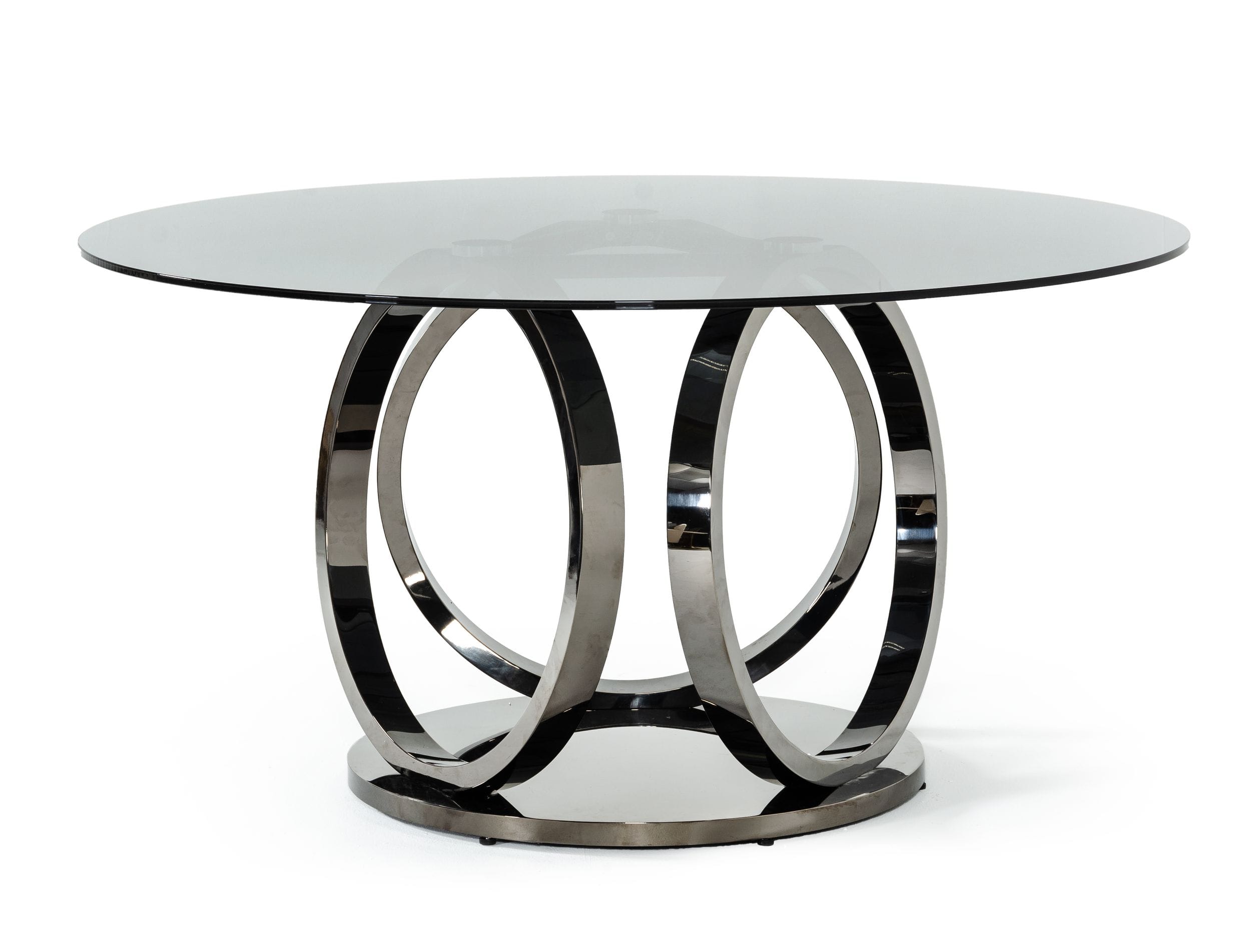 Modrest Enid Modern Smoked Glass & Black Stainless Steel Round Dining Table Model VGZAT009-DT