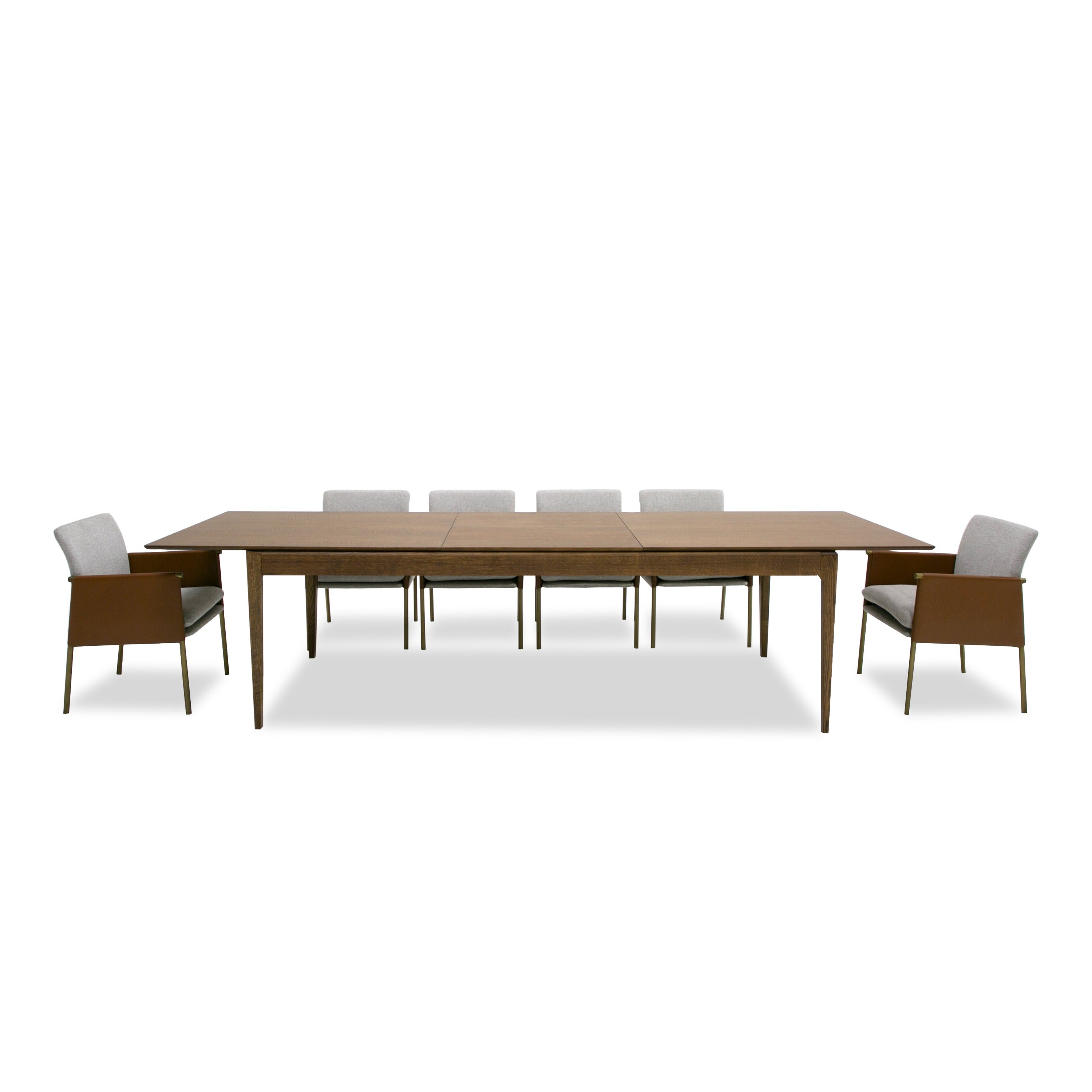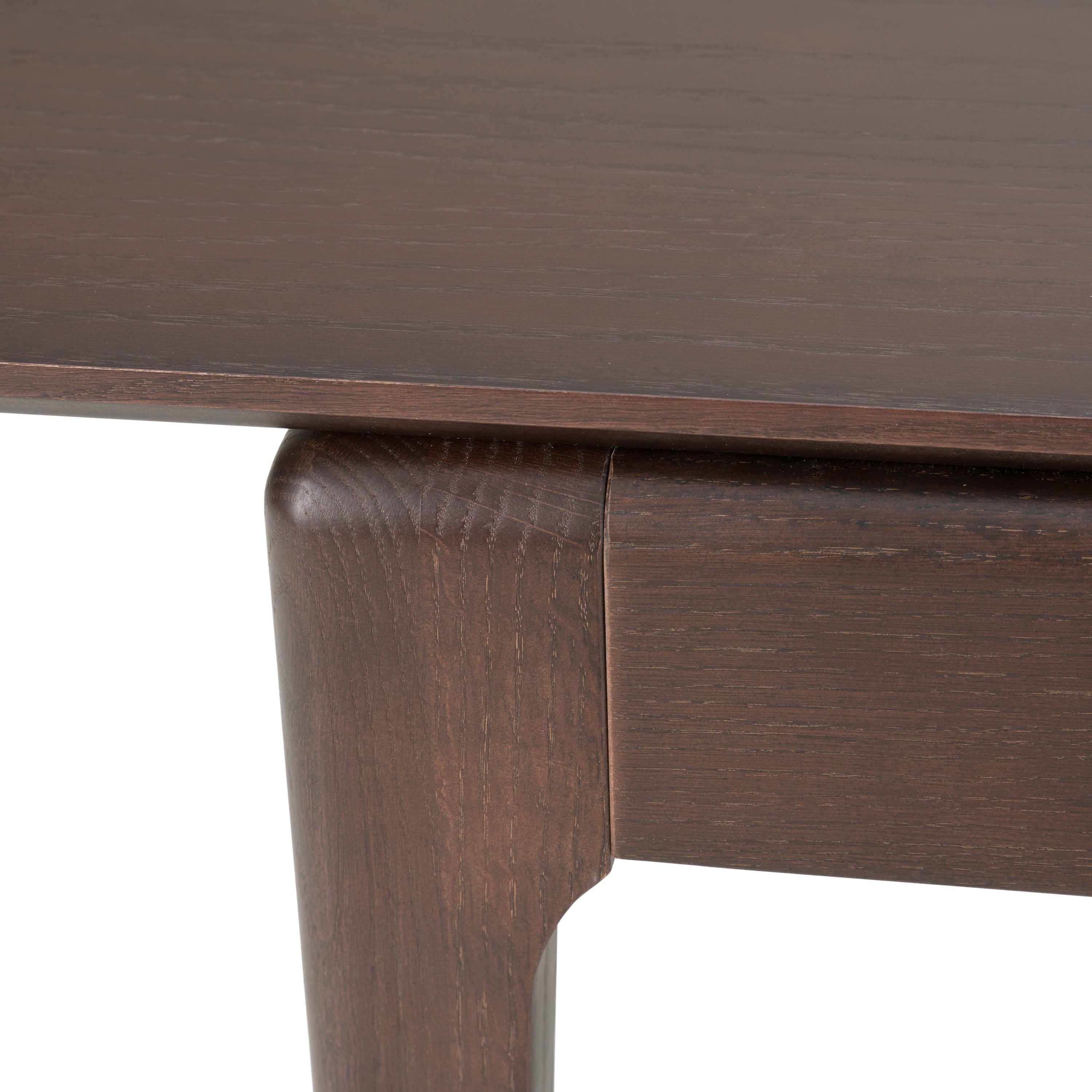 Looking for a dining table with a simple yet elegant aesthetic? The Dallas Dining Table sports a brown oak veneer top and a middle collapsible extension to add additional seating for parties and holidays! With solid oak legs and a brown stain finish, this table brings mid-century simplicity back to the 21st century dining space.