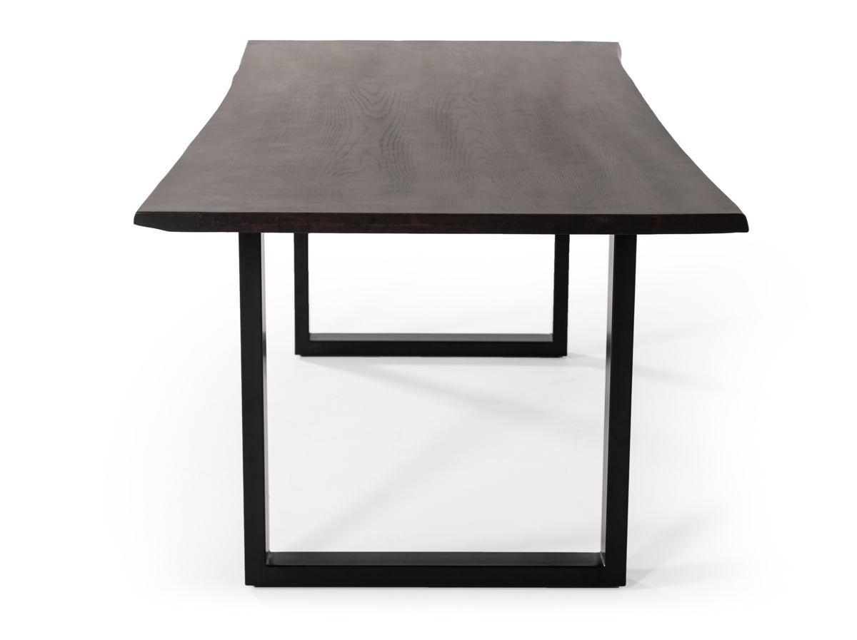 Exhibiting a clean, uncomplicated design style, the Modrest Leon Modern Umber Wood Live Edge Dining Table makes an impressive sight. Giving your dining room class, it features a solid rectangular Ash wood tabletop with a live edge that accommodates 6 people comfortably. Perched on robust black metal legs, this dining table adds an element of classic industrial style. The beautiful blend of wood and metal brings a touch of warmth into your home that will enchant your guests. Make dining with your family and friends more meaningful with the modern Umber Wood Live Edge dining table!