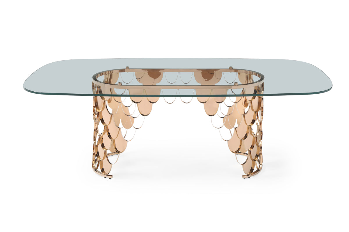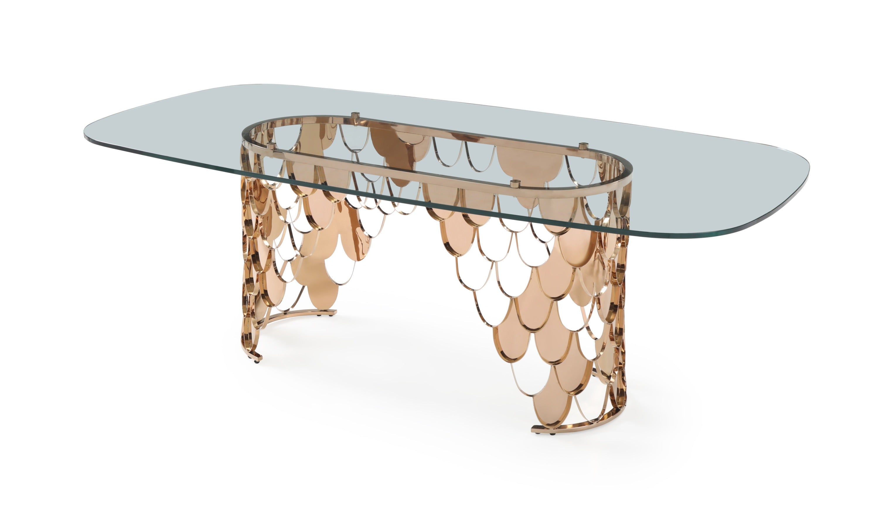Modrest Javier Modern Glass & Rosegold Dining Table Model VGVCT088L