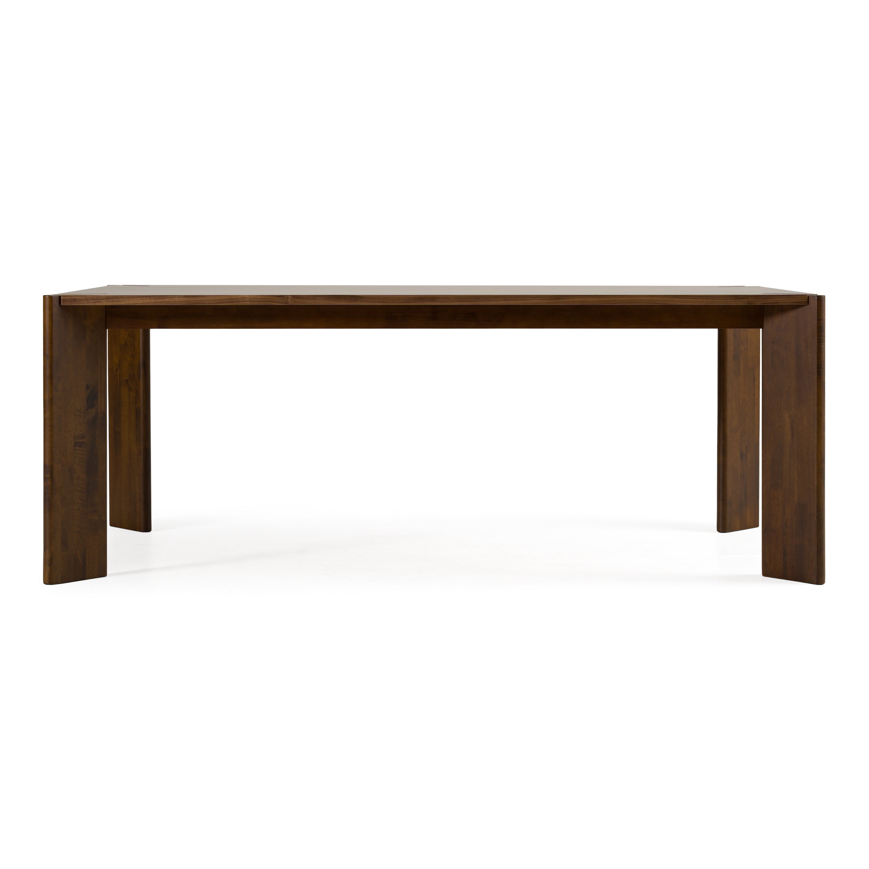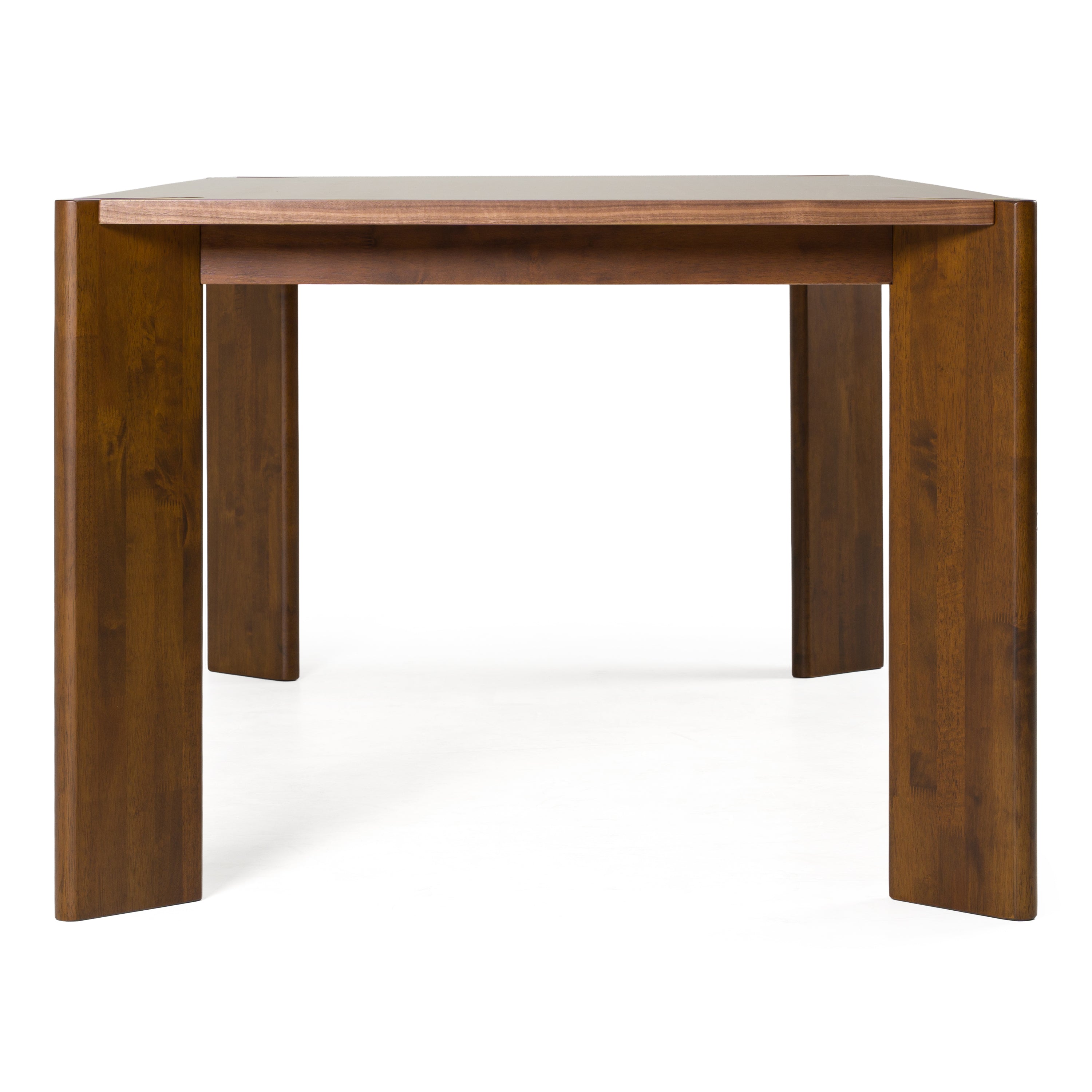 Bathe in the elegance of retro sophistication with the Edelman Dining Table, where mid-century modern charm meets contemporary grace. The tabletop, a seamless expanse of manufactured wood enriched with a lustrous walnut veneer, creates a warm and inviting dining ambiance. Solid rubberwood legs in a matching walnut finish offer not just support, but an aesthetic continuity that anchors any dining space. Perfectly poised to host intimate dinners or lively gatherings, this table embodies understated luxury with every meal shared upon it.