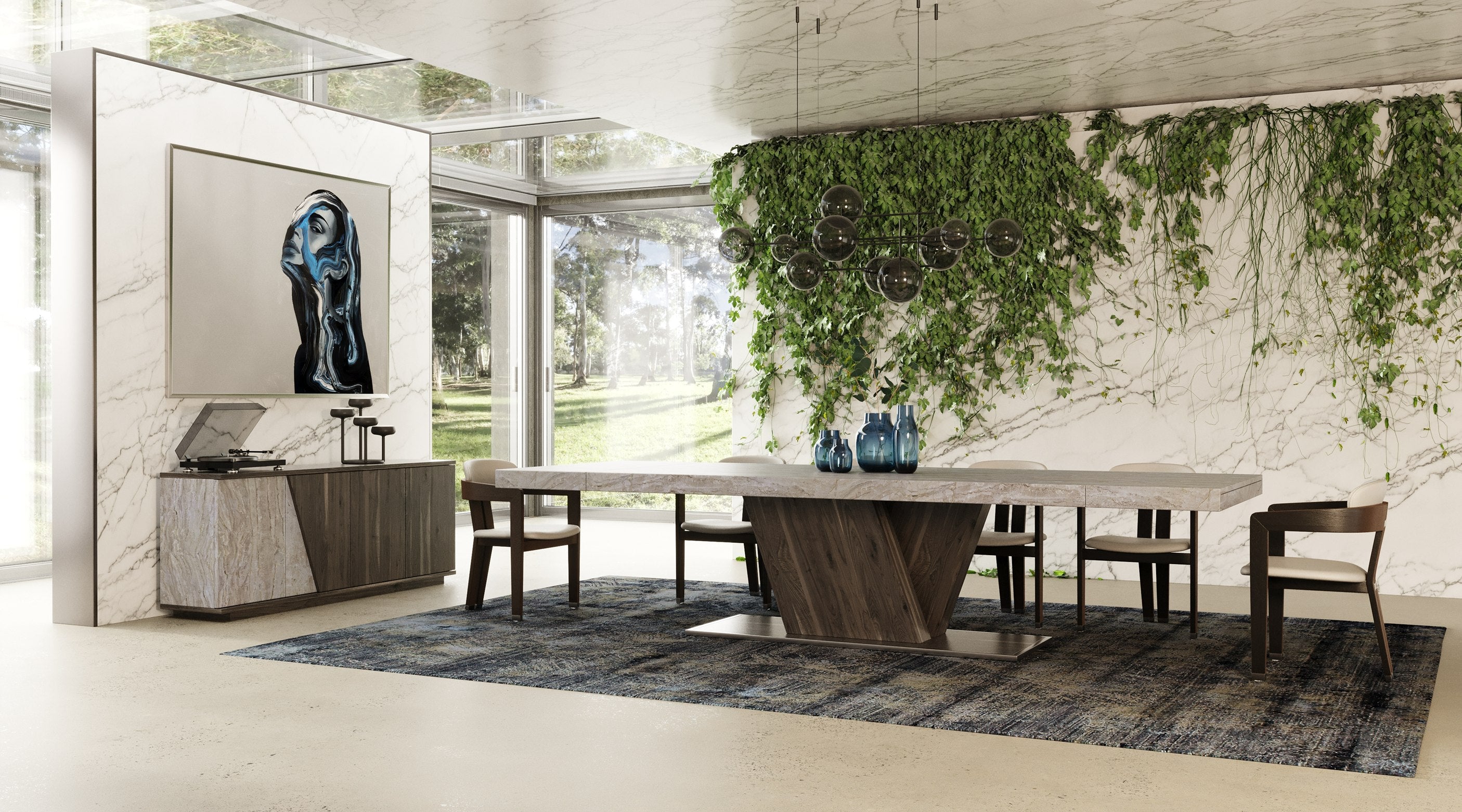 Nova Domus Cairo Italian Modern Faux Marble & Pecan Elm Extendable Dining Table Model VGACCAIRO-TBL