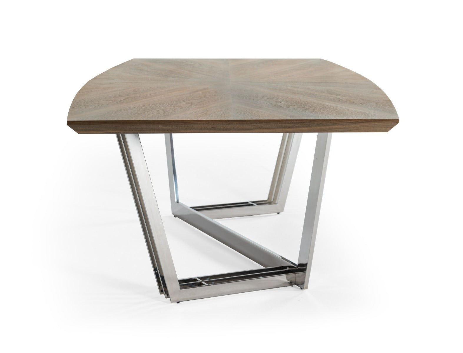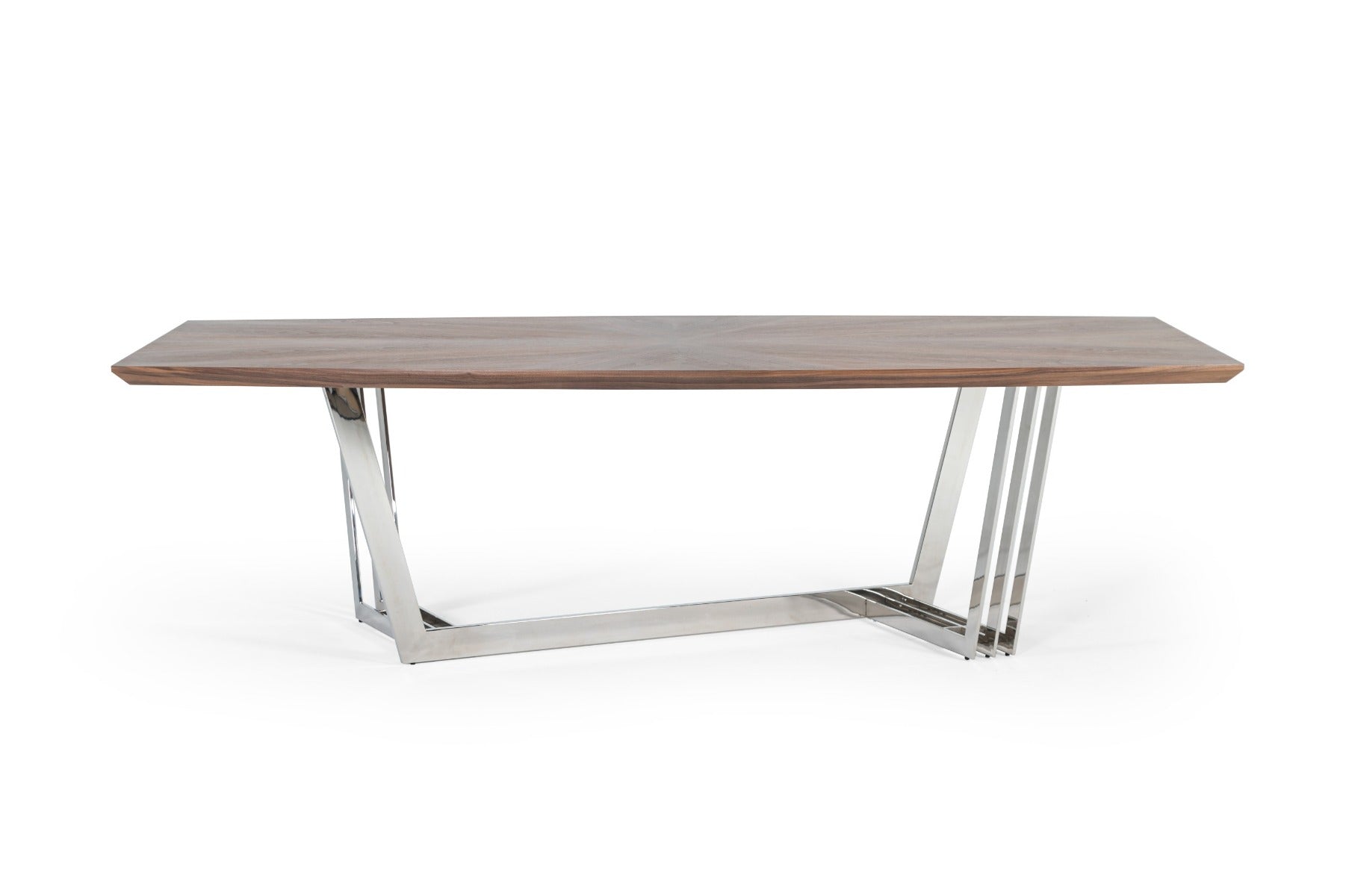 Modrest Gilroy Modern Walnut & Stainless Steel Dining Table Model VGBBMI2003T-WAL-DT