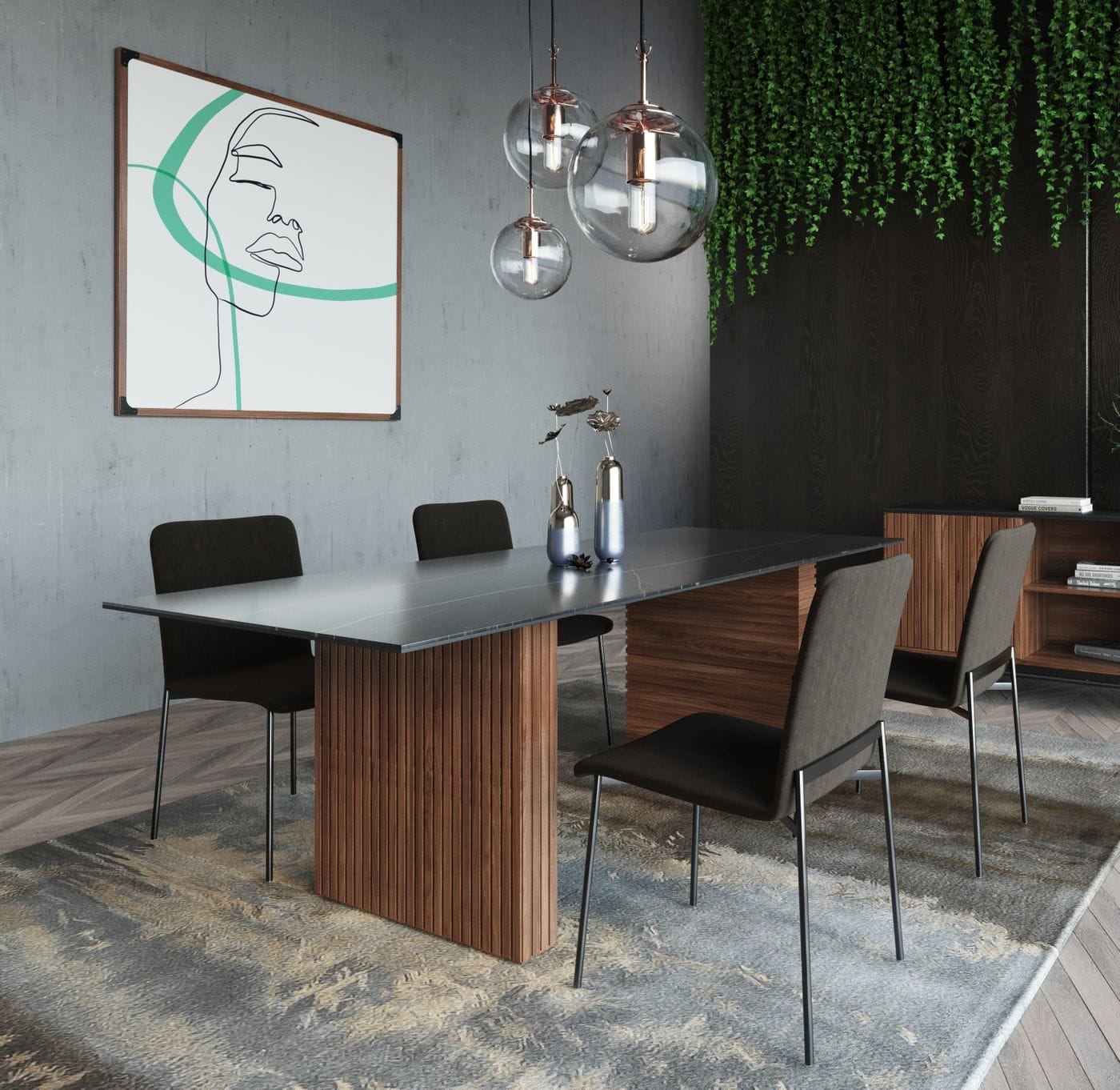 Modrest Maggie Modern Walnut And Black Ceramic Top Dining Table Model VGDWJ3555-1