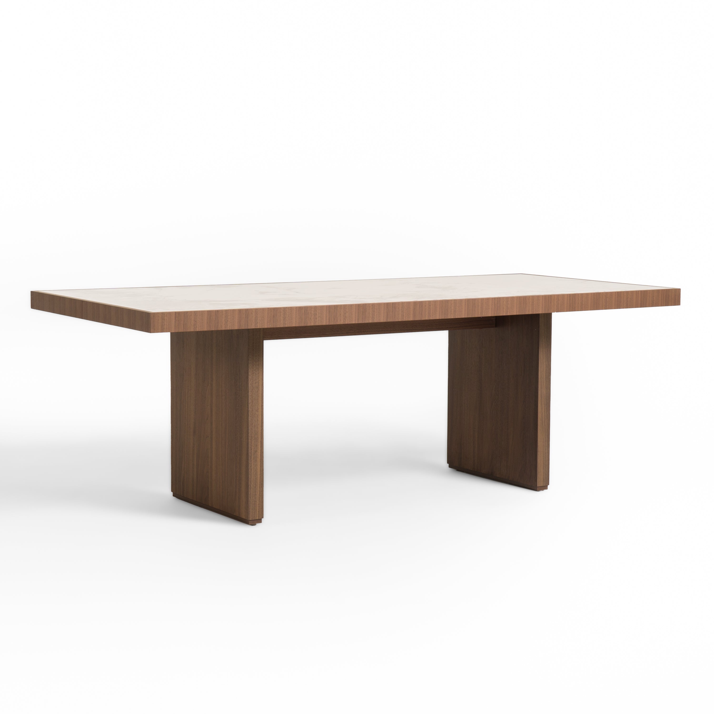 Introducing the Nova Domus Bailey Modern Walnut Rectangular Dining Table, a stunning centerpiece for any contemporary dining space. Crafted with meticulous attention to detail, this table boasts a sleek and sophisticated design. The rich walnut finish adds a touch of elegance and warmth, while the rectangular shape allows for comfortable seating and effortless conversation. Its sturdy construction ensures durability, while the spacious surface accommodates gatherings of all sizes. With its modern aesthetic and exceptional craftsmanship, the Nova Domus Bailey Dining Table effortlessly combines style and functionality, making it the perfect addition to elevate your dining experience.