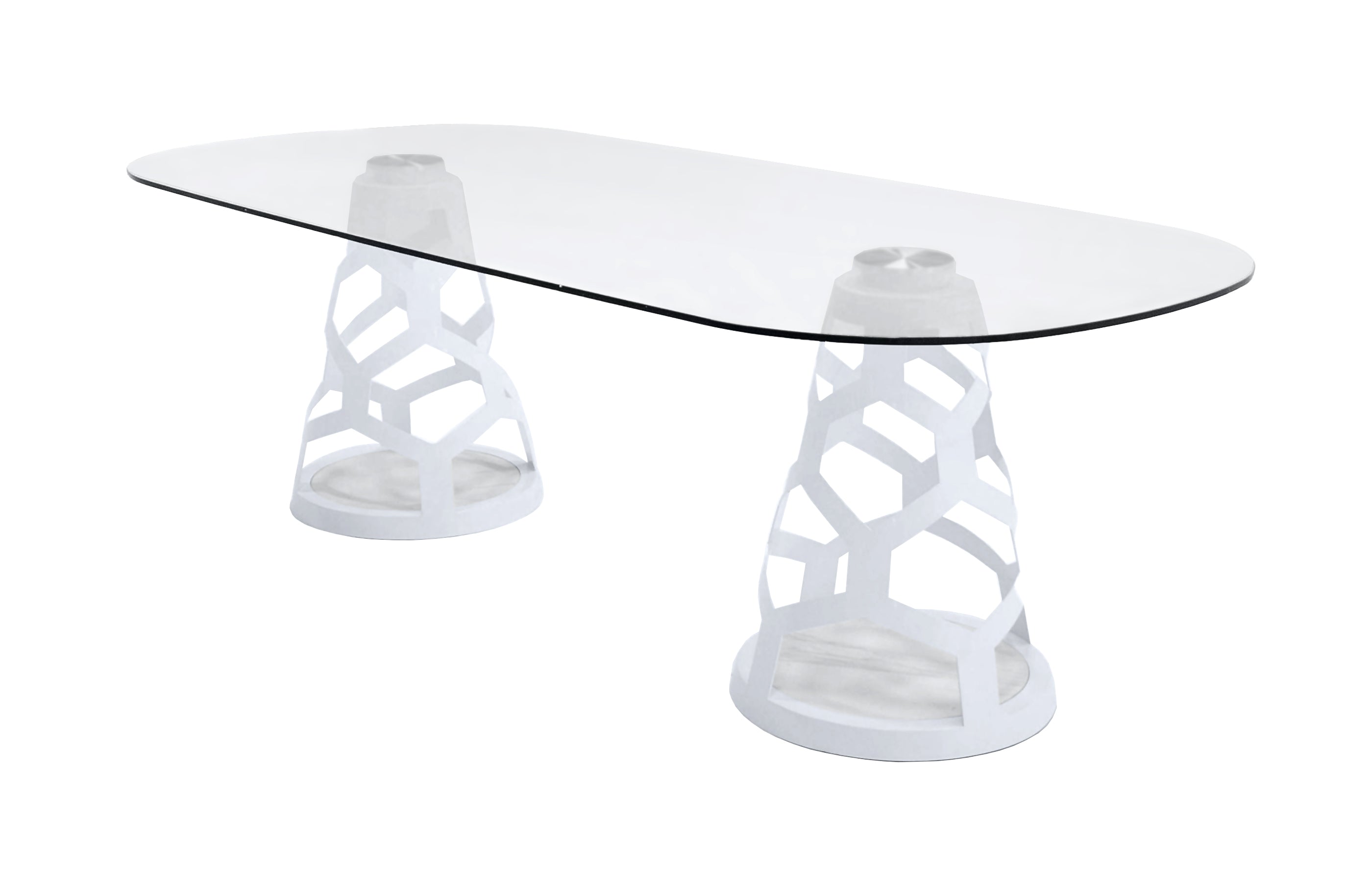 - Base: Stainless Steel/White Matte Finish- Double Pedestal