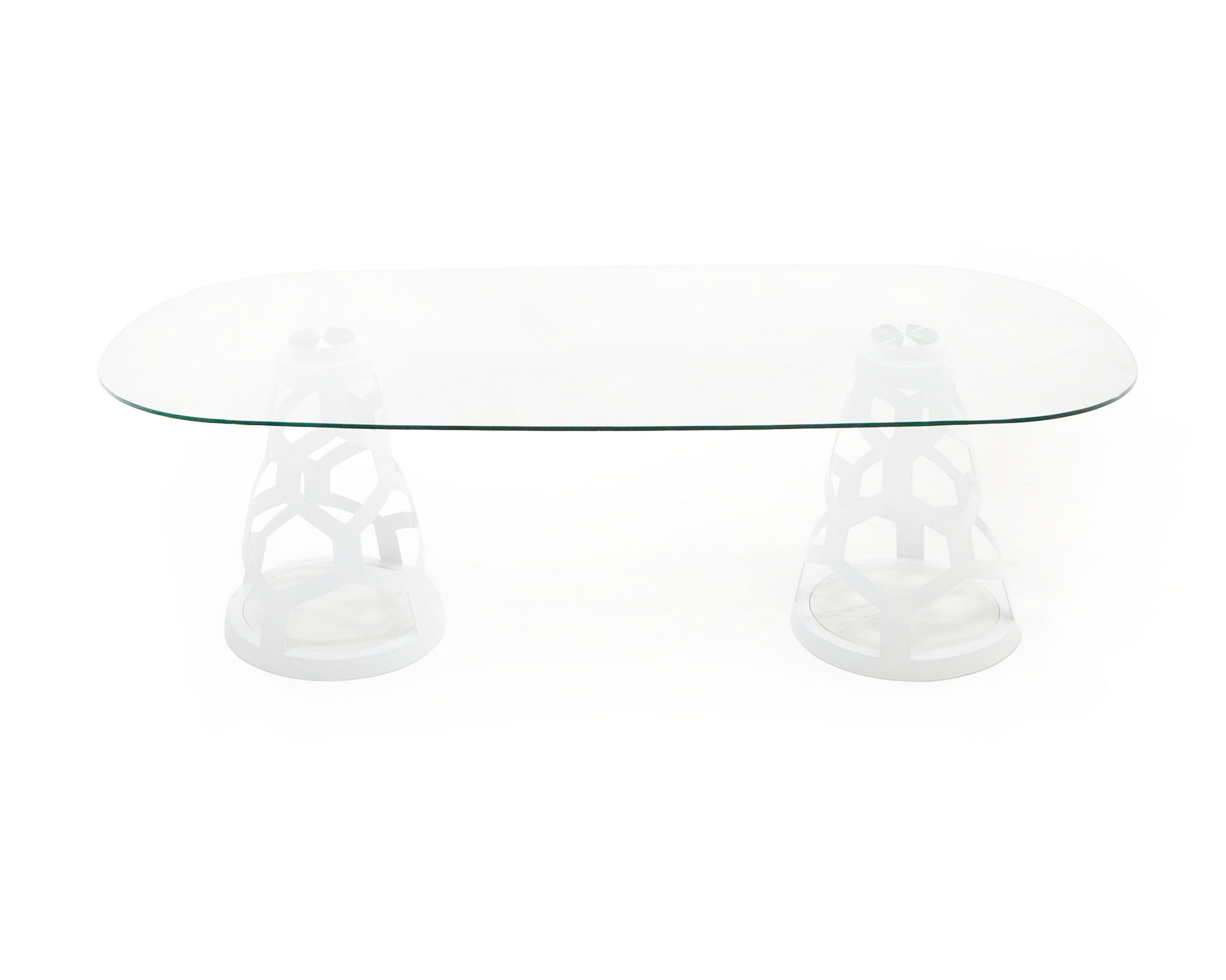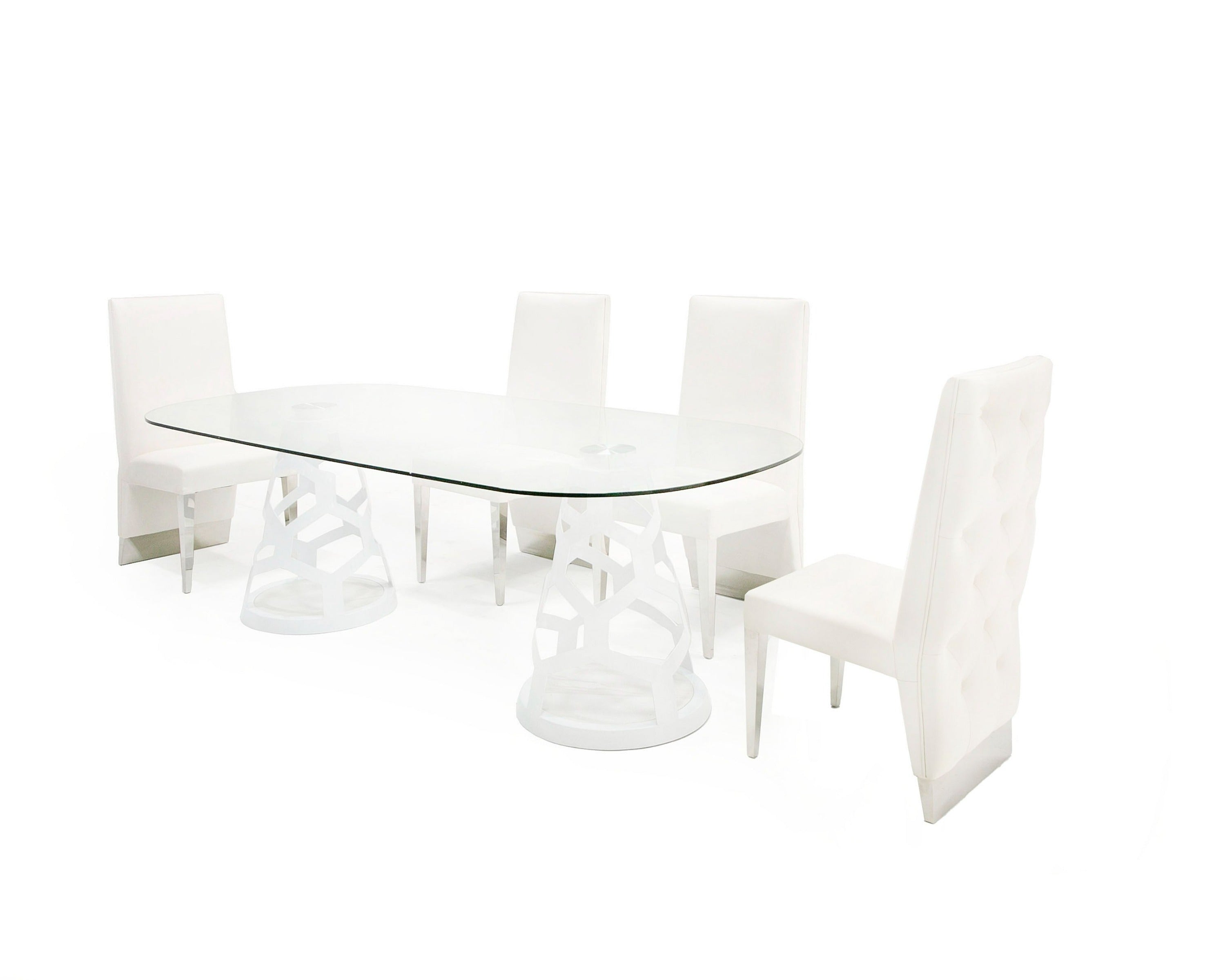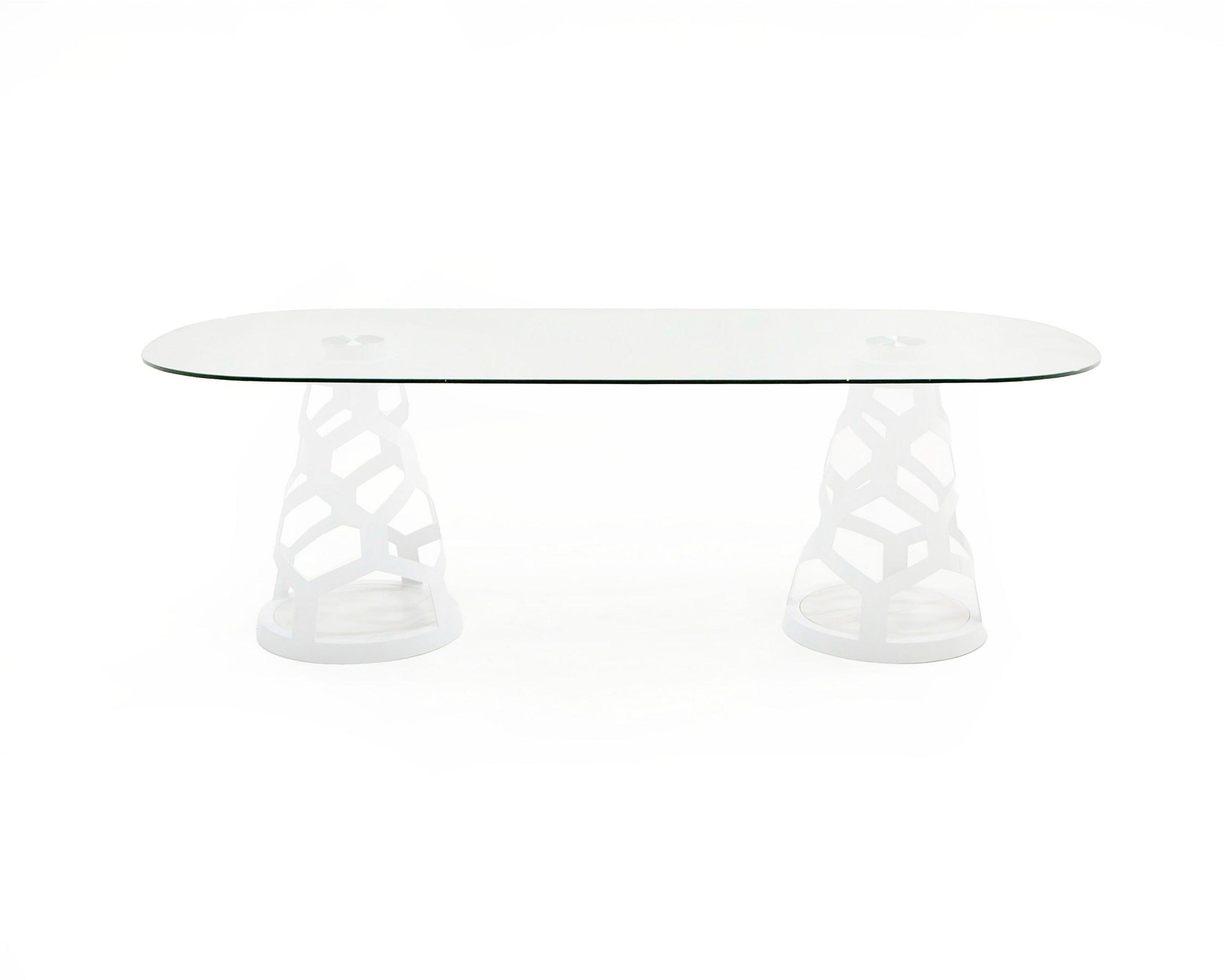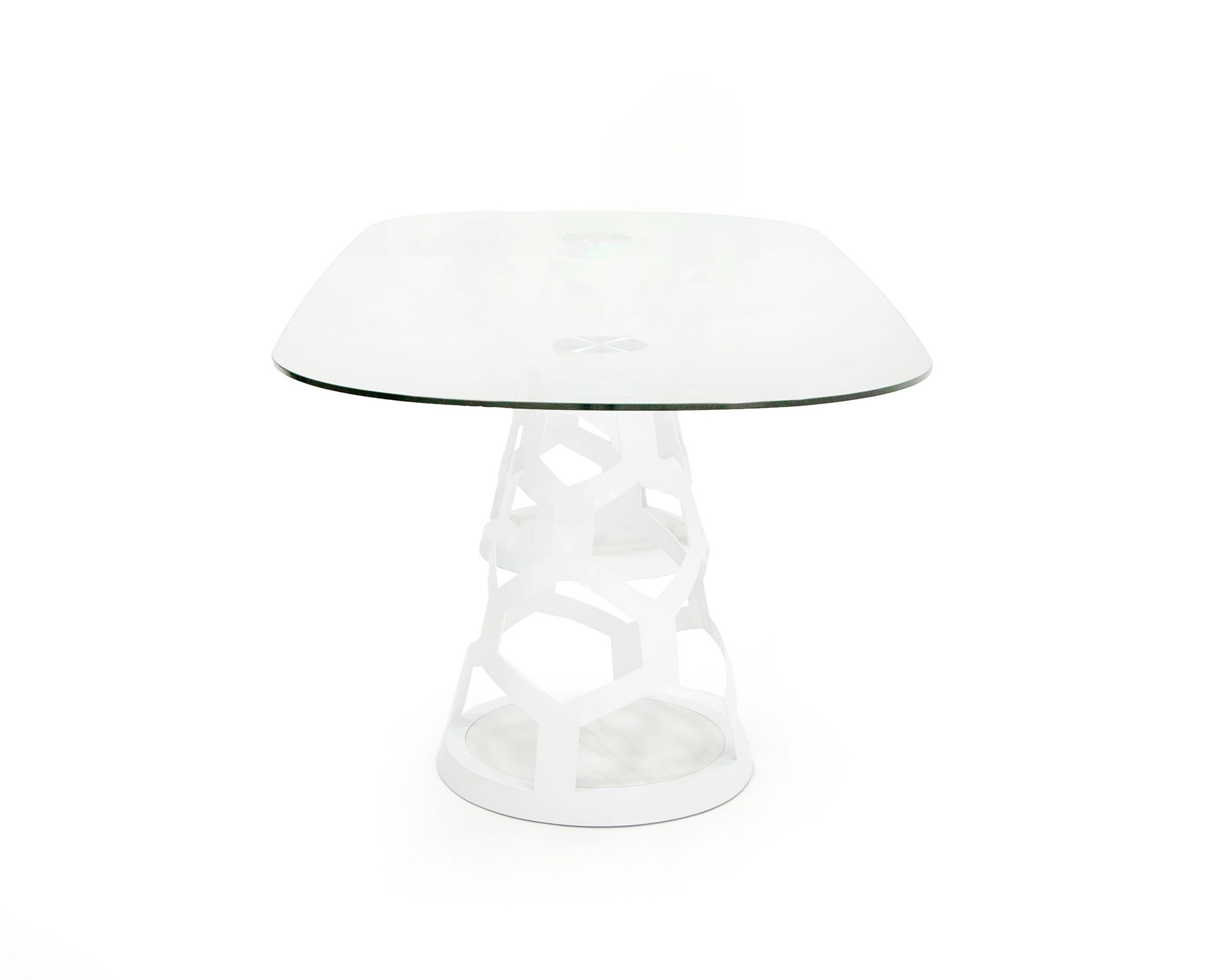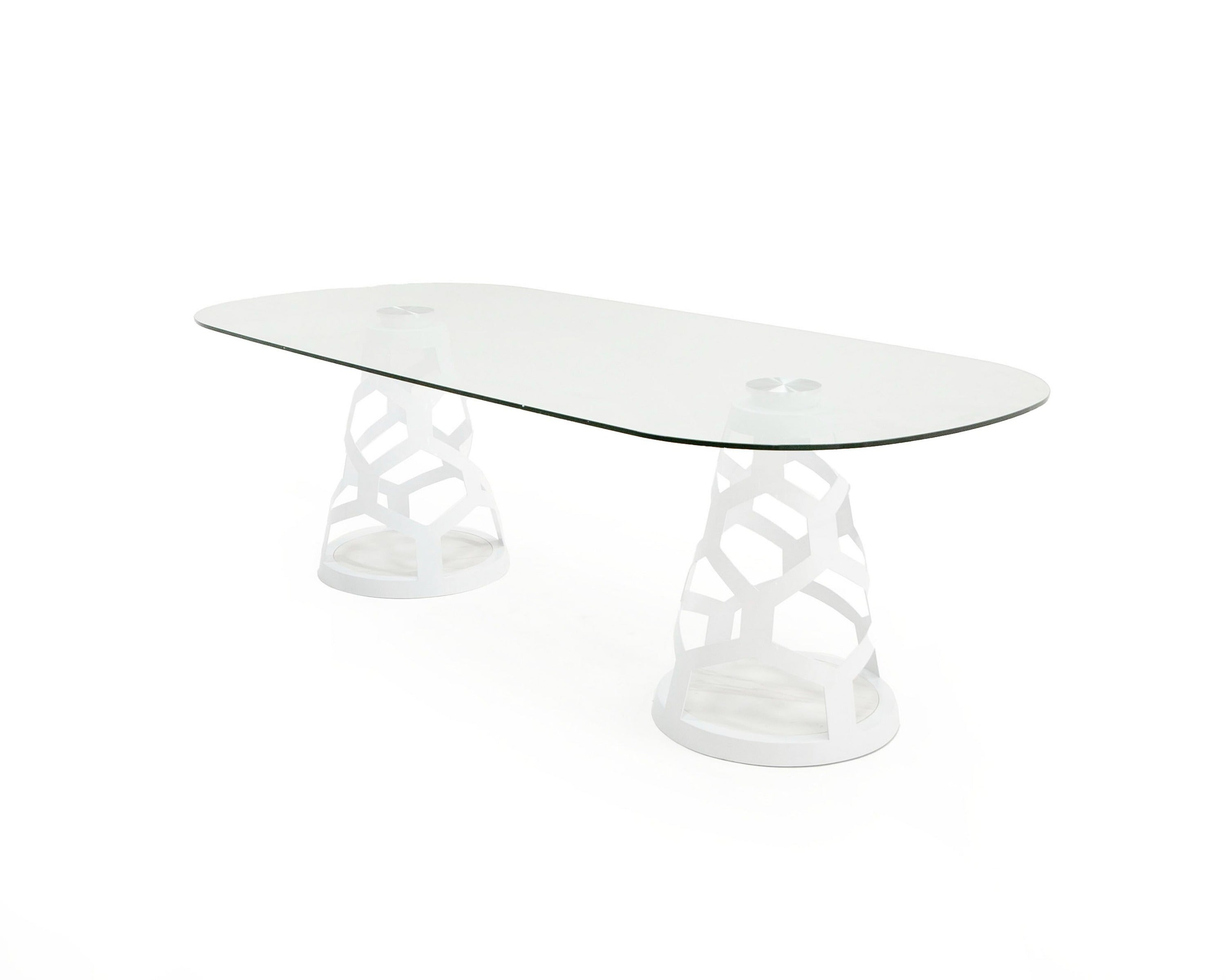 Modrest Lilly Modern White And 15Mm Glass Rectangular Dining Table Model VGNS-GD8800B-15-W