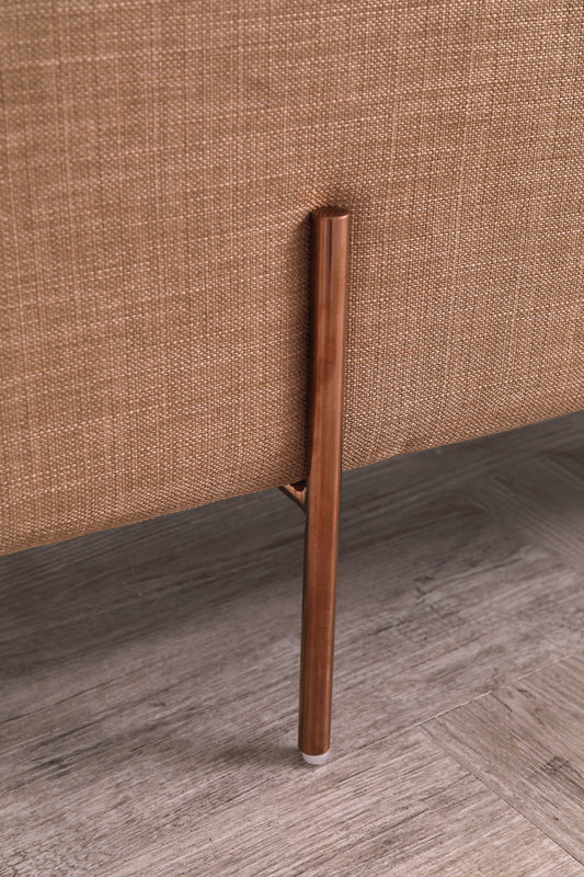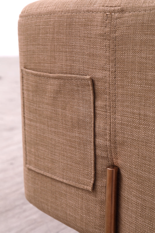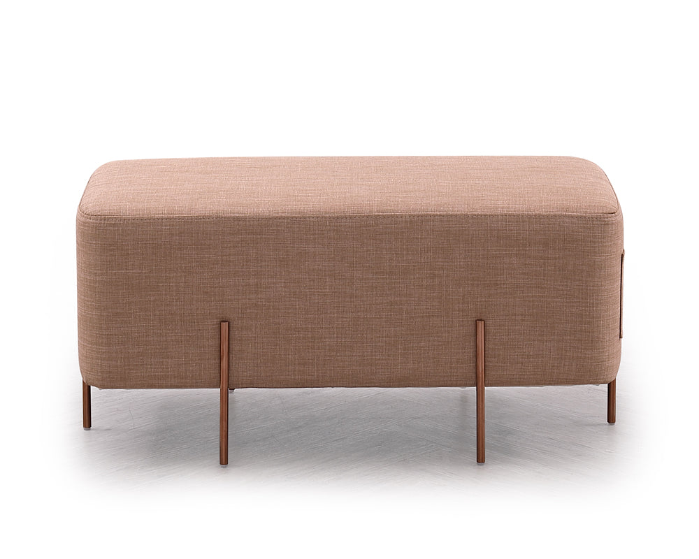 With its versatile design, the Divani Casa Adler Modern Brown Fabric Ottoman has more to offer. Upholstered in breathable brown fabric, its rectangular top offers a place to rest your feet, a place to sit or hold a drink placed on a tray. Featuring a pocket on one side, this modern fabric ottoman sits atop bronze brass stainless steel legs with stoppers.