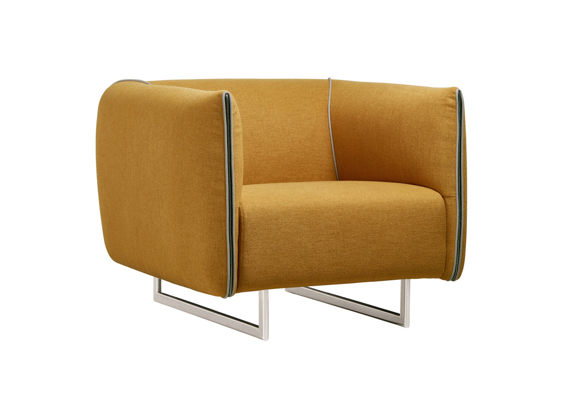 The Divani Casa Medora Modern Grey & Yellow Fabric Sofa Set emanates warm inviting feel featuring grey and yellow S05/S10 fabric upholstery. Designed with an "embracing" boxy look where both back and arms are of the same level, it features zipper accents on the front of the arms. Equally distant piping accentuates the back and front. Requiring some assembly, this modern sofa set stands on rectangular metal legs includes a sofa, a loveseat, and a chair.