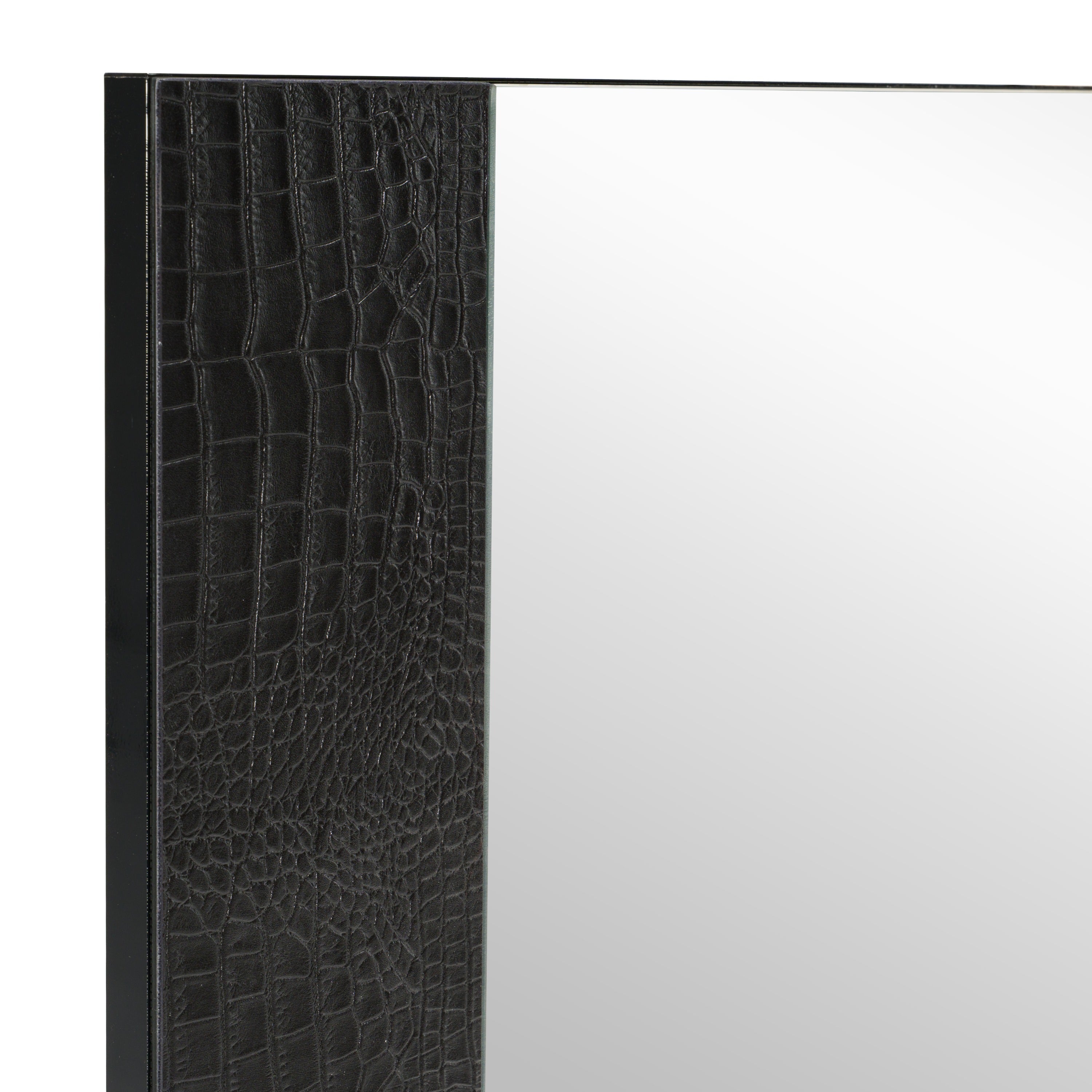The Modrest Ancona Italian Modern Black Mirror brings in a touch of classiness featuring a black high gloss and crocodile textured finish frame with silver reflective accents. Made in Italy, this modern black mirror has a dimension of W39" x D1" x H41". The dresser in the photo is available separately.