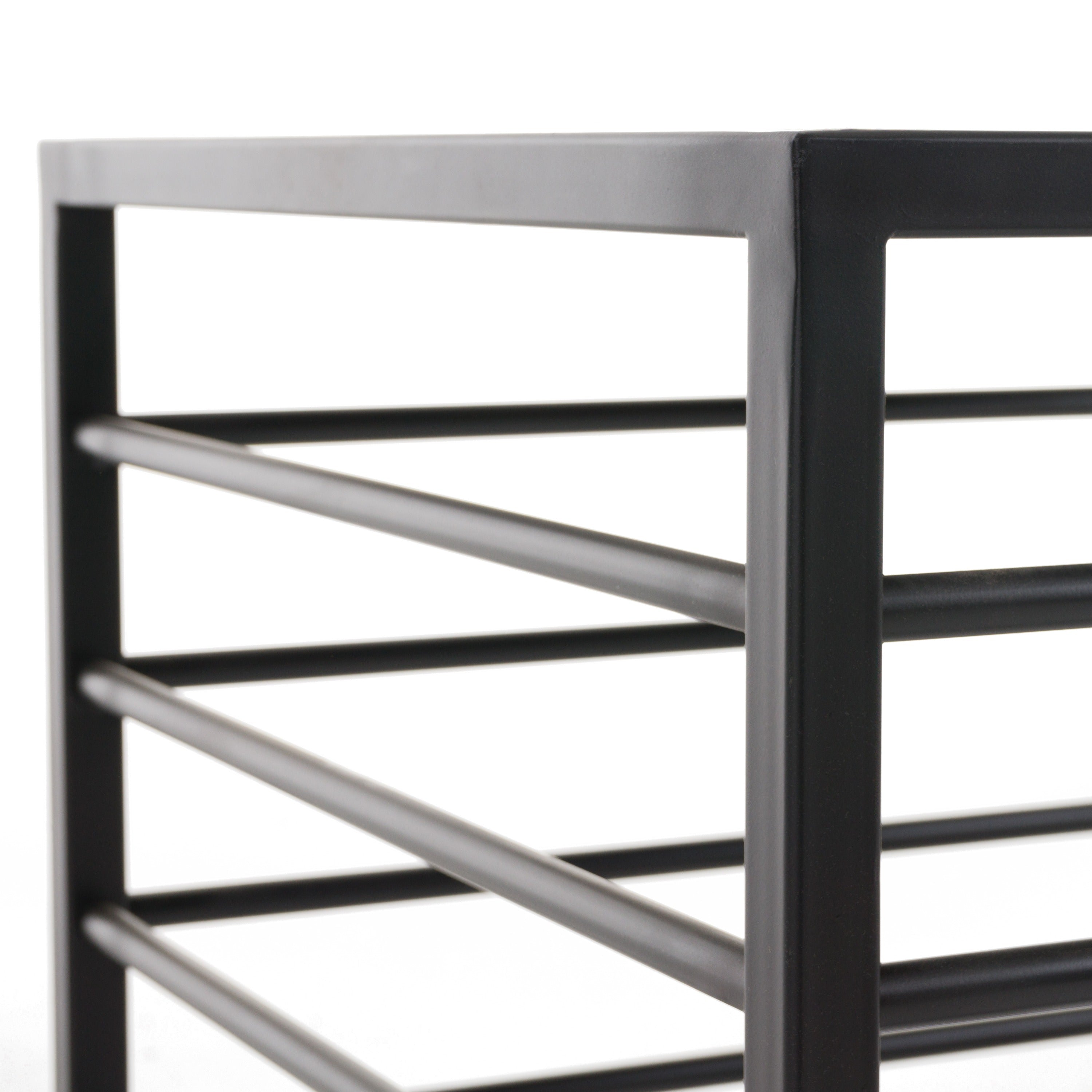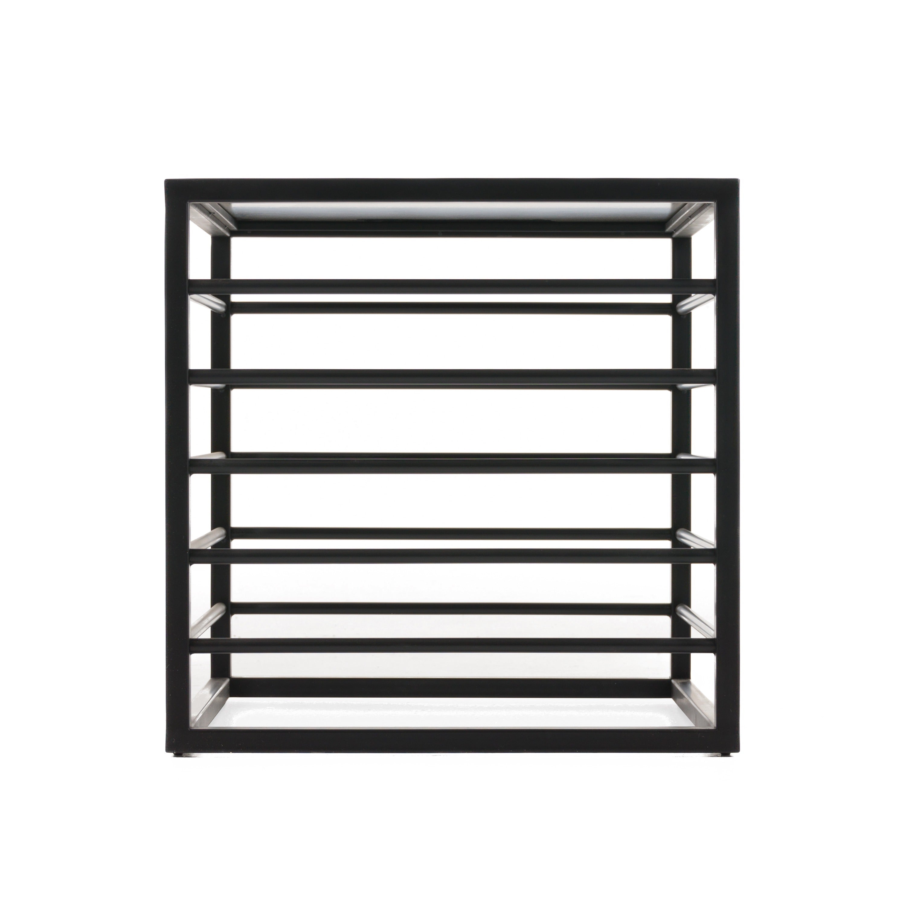 The Malvo is a styish, modern piece of furniture, with slatted metal bars that support the square base. The dark glass top is warm and inviting. Perfect for a modern or mmidbentury  room.