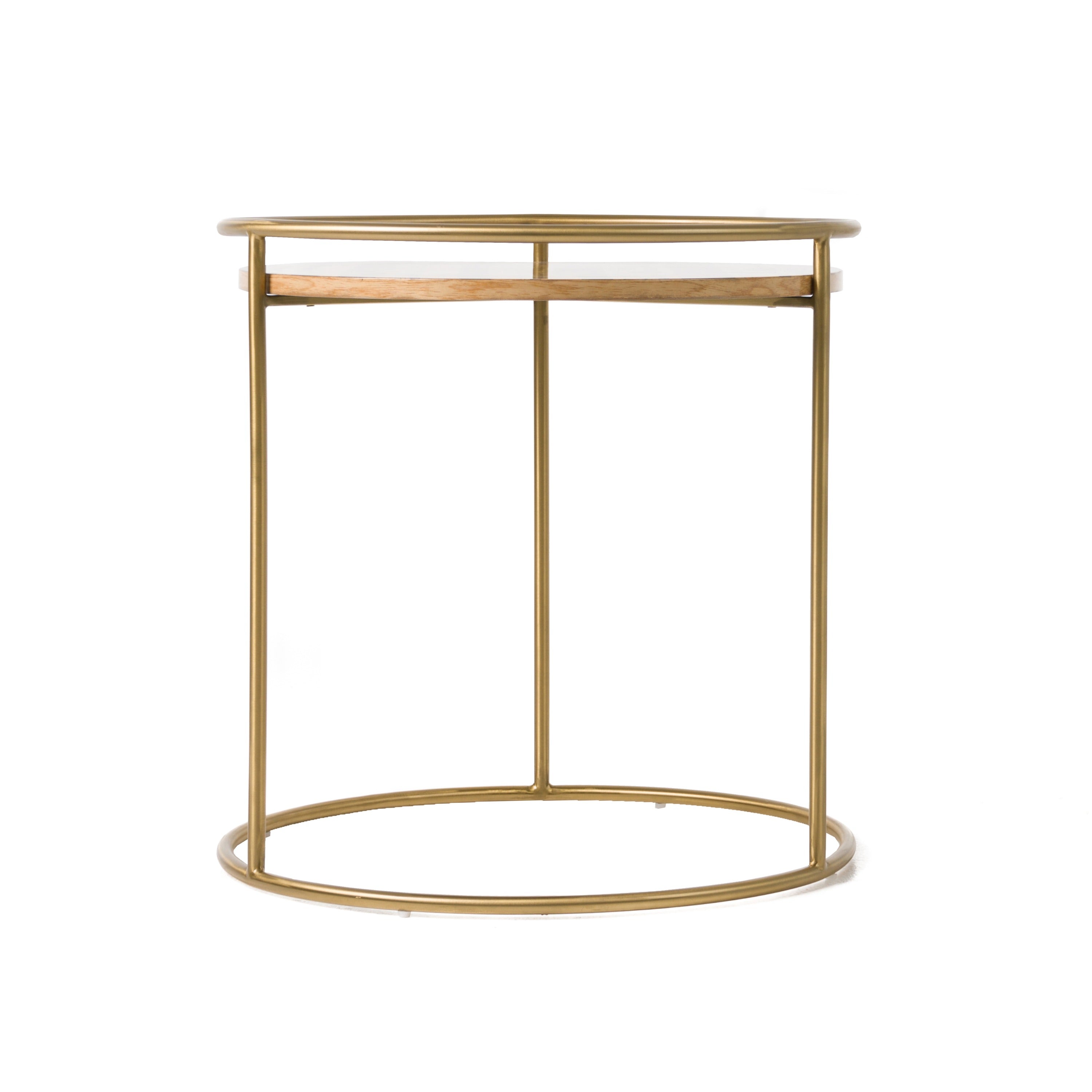 This glam round end table features a brown faux-marble table top. There is also a brushed gold stainless steel frame base. No assembly is required for this table.