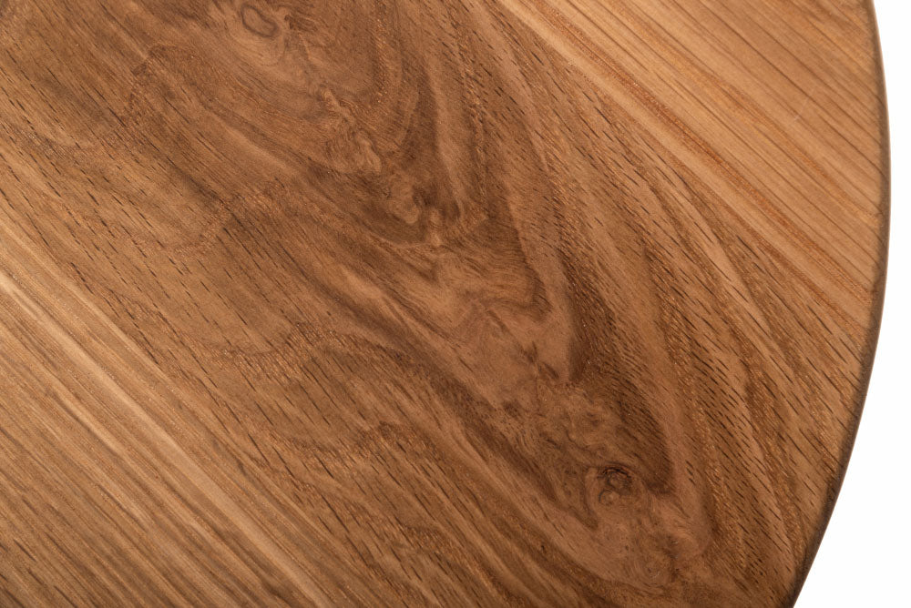 The Bacone End Table is a small end table perfect for an industrial, contemporary, modern, or farmhouse living area. The black powder-coated iron legs give the table a solid construction as well as a sleek styling. The top is a round natural oak slab that humbles the piece and creates texture in a space.