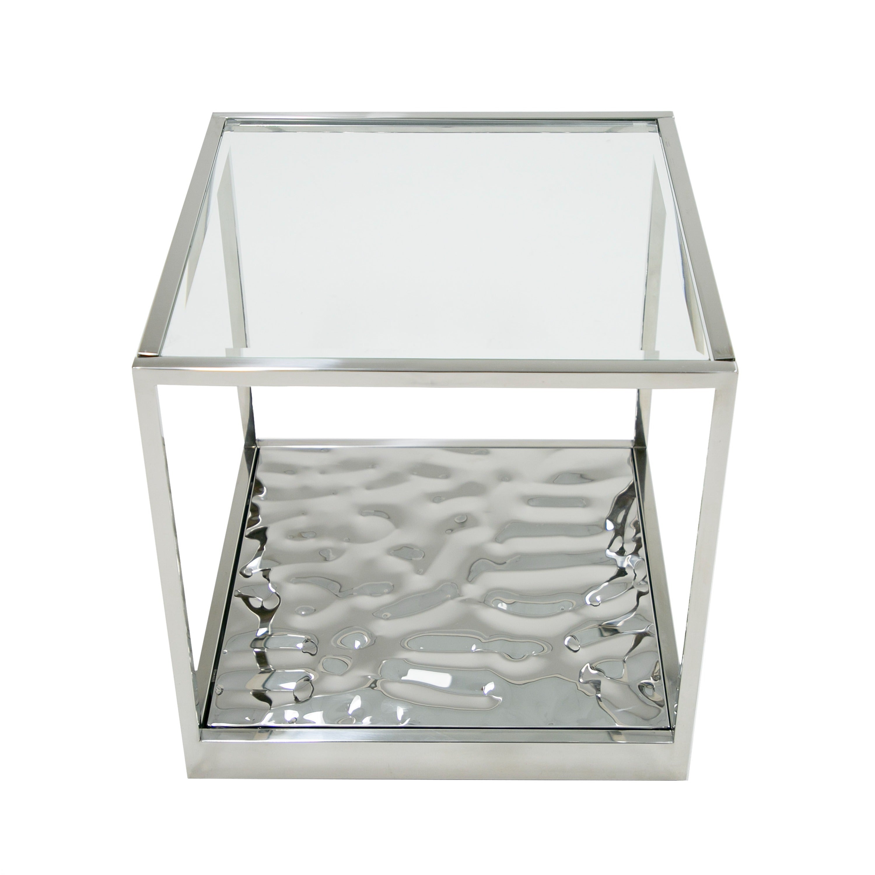 Modrest Braxton Contemporary Clear Wave Glass End Table Model VGGMET-1676-ET